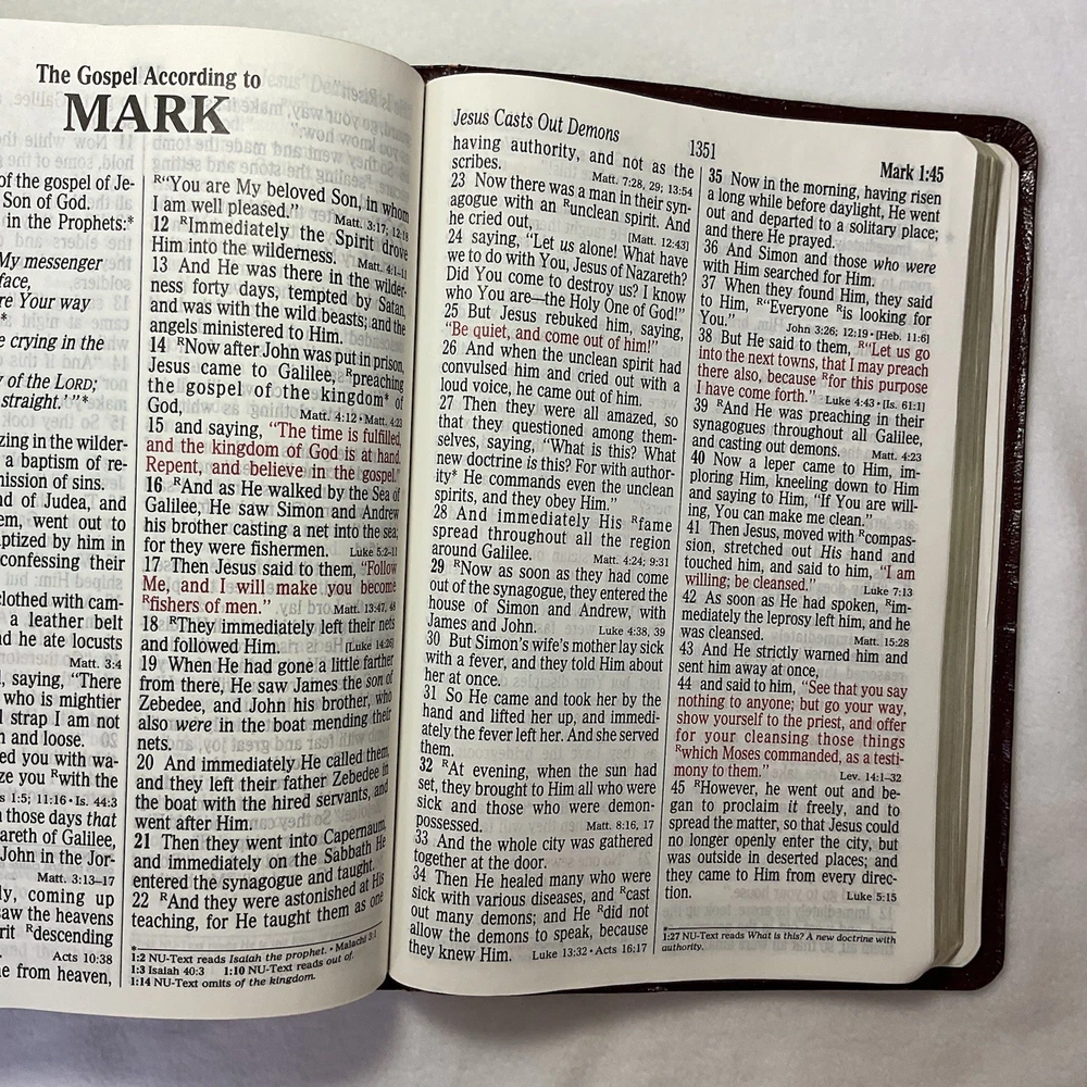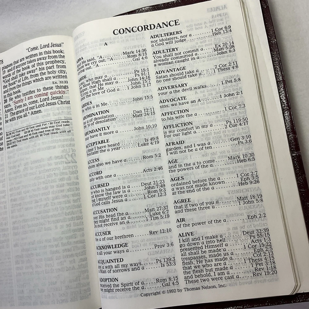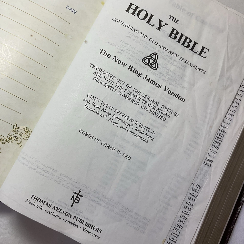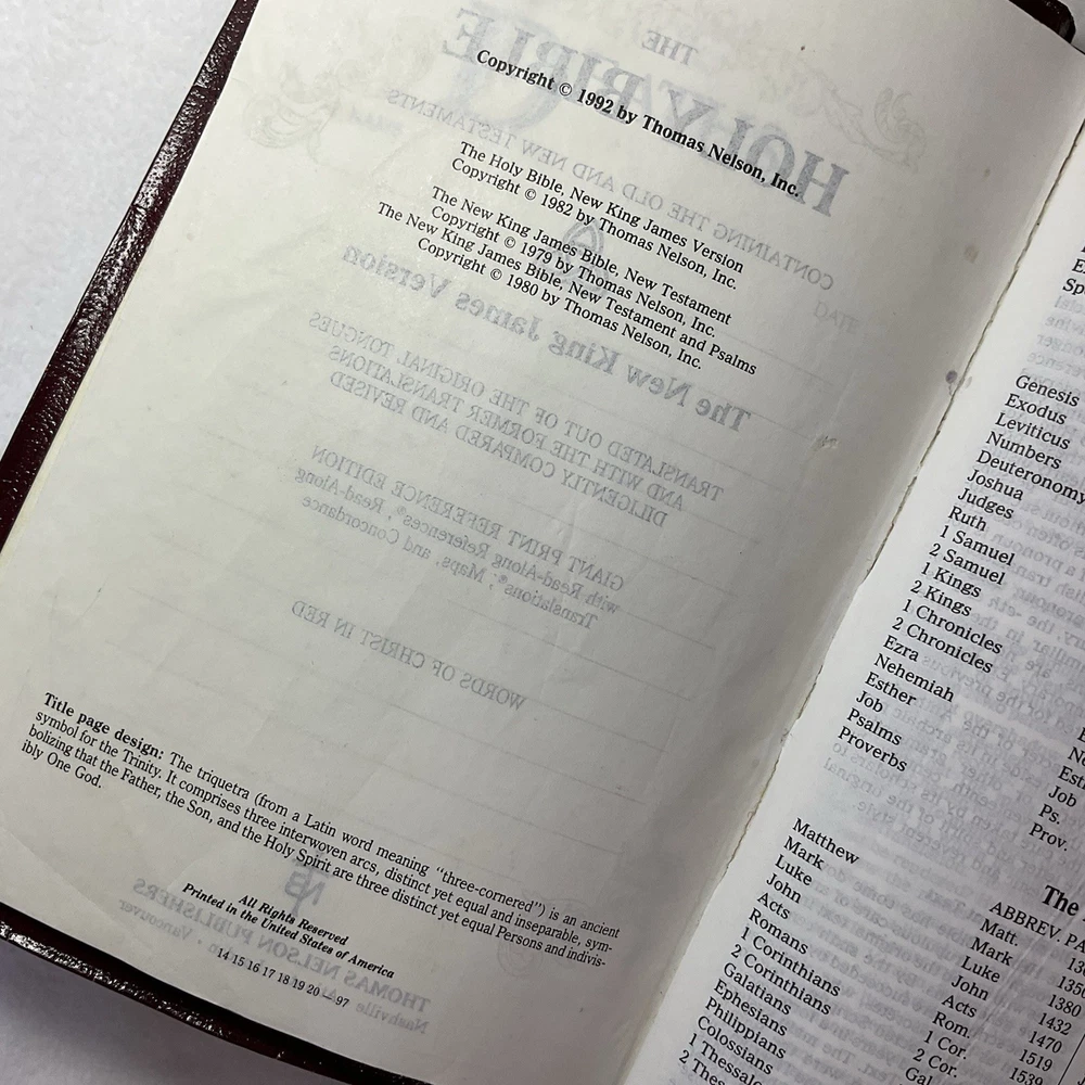 Holy Bible, New King James Version, NKJV. Giant Print, Red Letter, References, Maps, Concordance. Nelson 433BG, 1992. Burgundy color. Gently used. More Books Here Please look at all pictures for additional description Feel free to ask questions if you have them! All items will be securely shipped with appropriate protection Yes I combine shipping when possible if you purchase more than one item. Message me for details! I strive for excellent customer service and if you have ANY problem, please let me know so we can work it out! Thanks for shopping at Finders and Keepers!