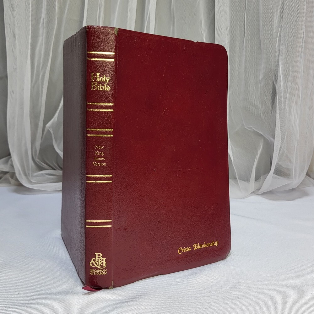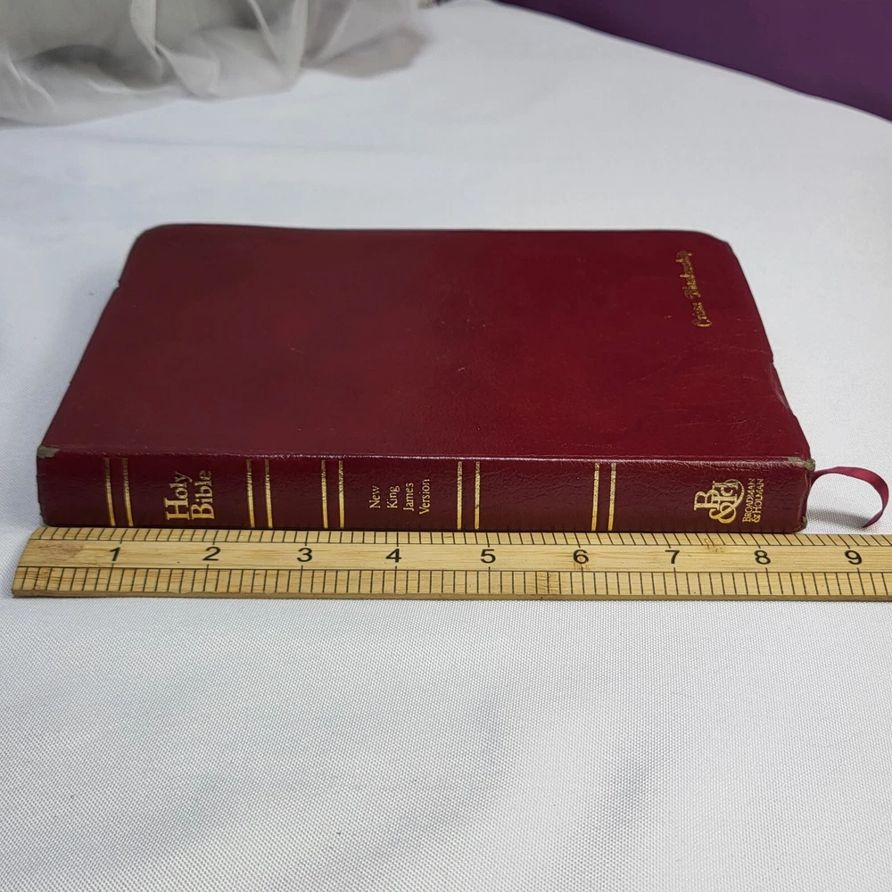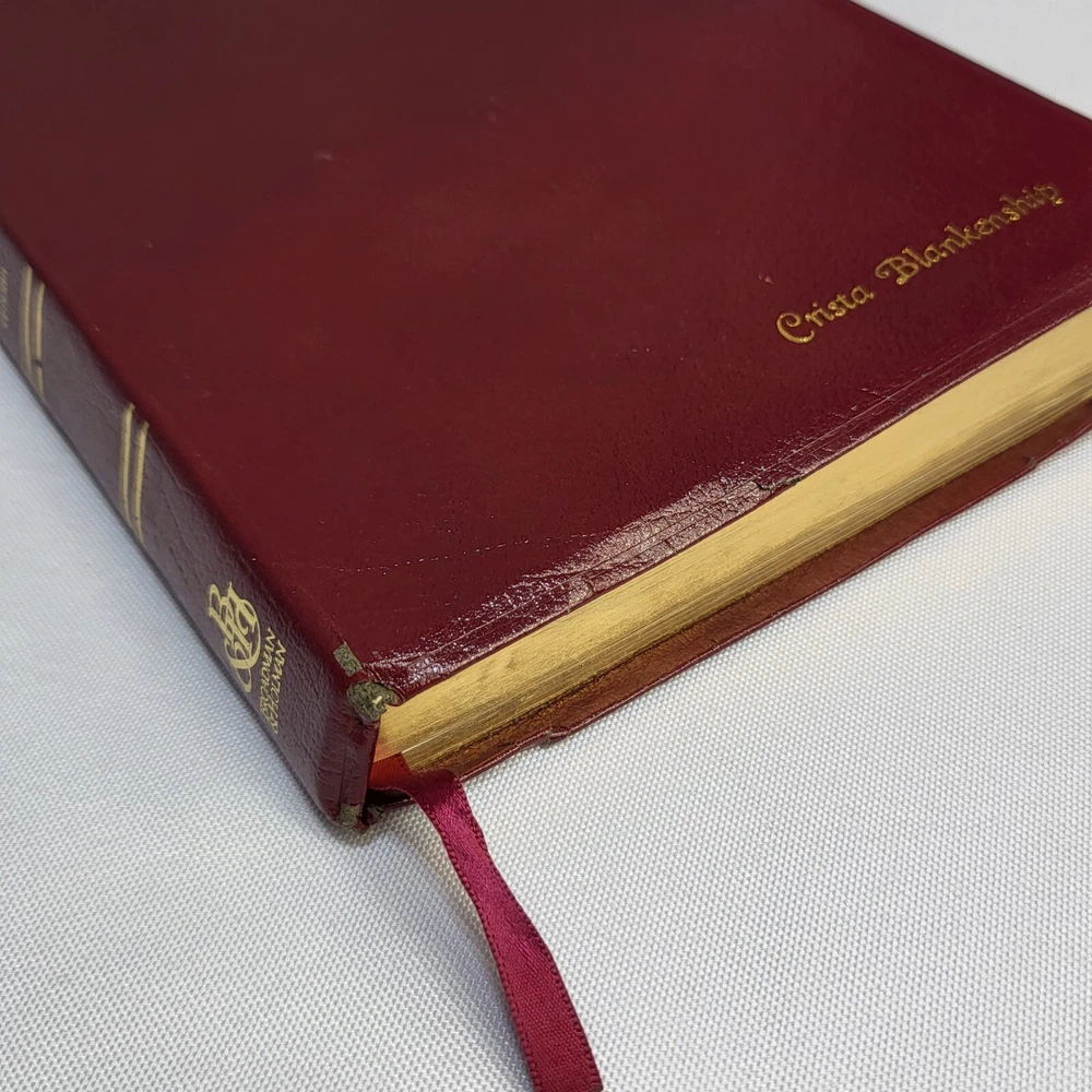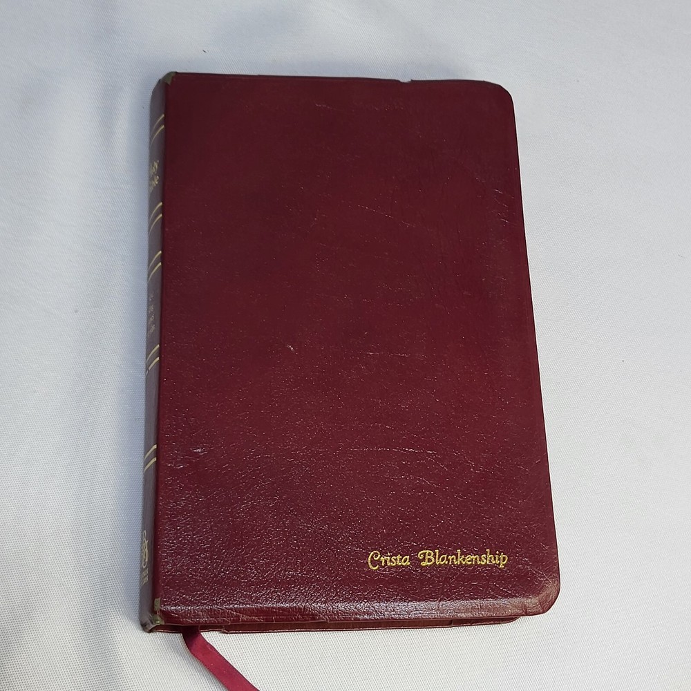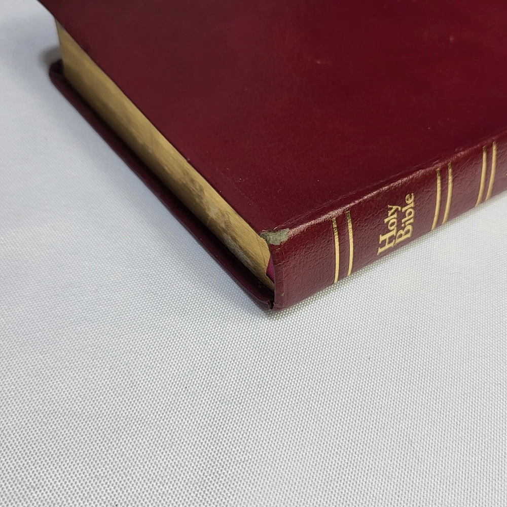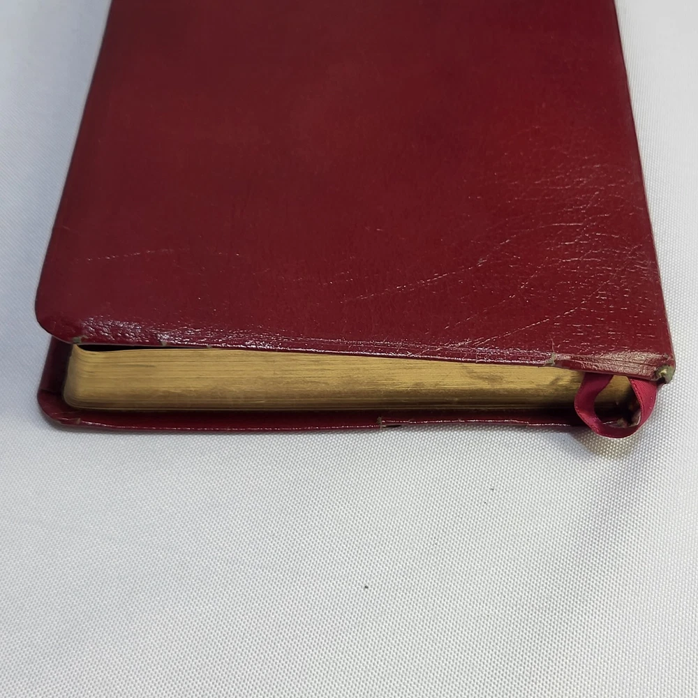 This Bible is in great condition for its age—no rips or tears, just some normal wear on the cover and spine. The red-letter text is clear, and the bonded leather feels sturdy. The previous owner’s name is embossed, and there are a few notes inside, but it doesn’t distract from reading. Perfect for daily use or study!