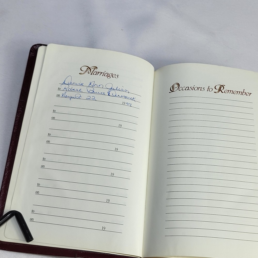 Good Clean Pre-owned Condition No rips or tears Prior owners name embossed on front cover Some writing/notes on the memory pages Cover and spine have wear Please see all pictures for more details Let us know if you have any questions