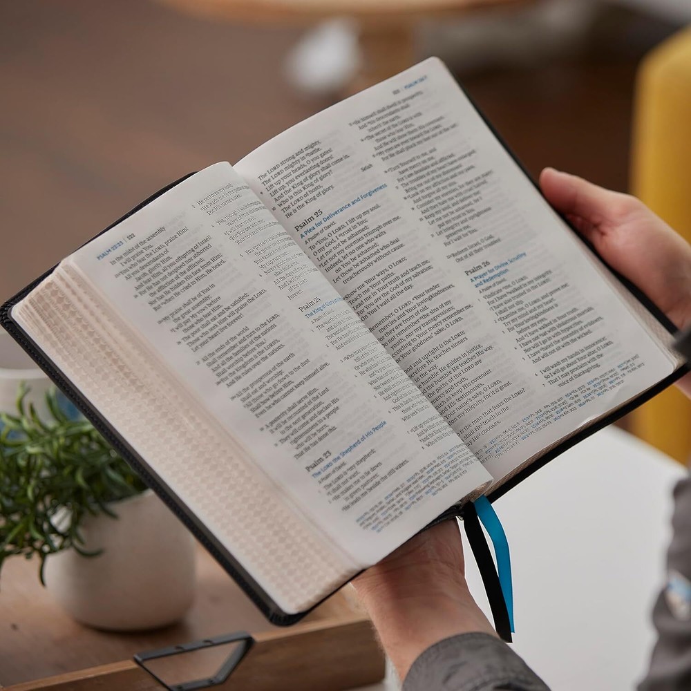 This Bible is a joy to hold—lightweight yet sturdy, with premium leather that feels luxurious. The large, crisp Comfort Print makes reading effortless, and the blue-letter text highlights Jesus' words beautifully without straining the eyes. Perfect for daily study or travel, it’s a must-have for anyone who loves the NKJV. The craftsmanship is outstanding, and the thinline design slips easily into a bag. Highly recommend!