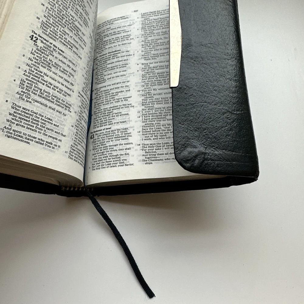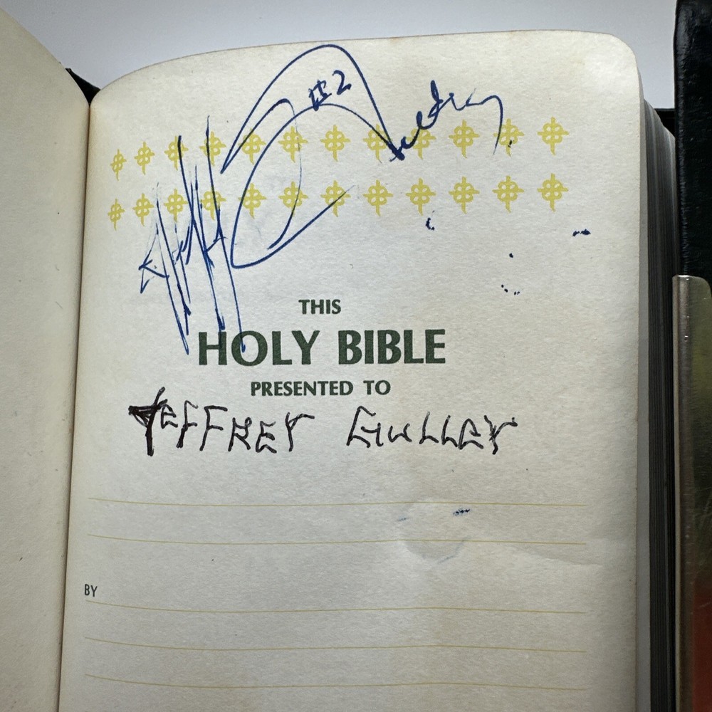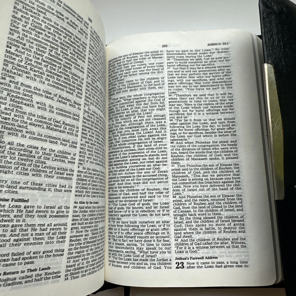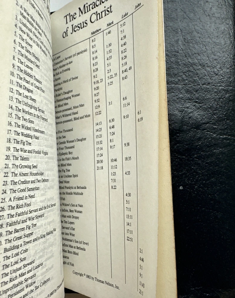 This compact edition of The Holy Bible is a timeless treasure for any reader. With a bonded leather bound cover, it exudes elegance and sophistication. Originally published in 1985, this version is the New King James translation, which remains a popular choice for scholars and lay readers alike. The book includes personalized inscriptions. It features a range of topics that cover a breadth of knowledge, including religion, history, literature, and philosophy. The vintage quality and personalization of this gives it a unique charm.