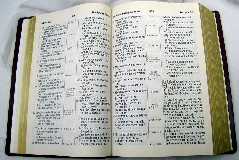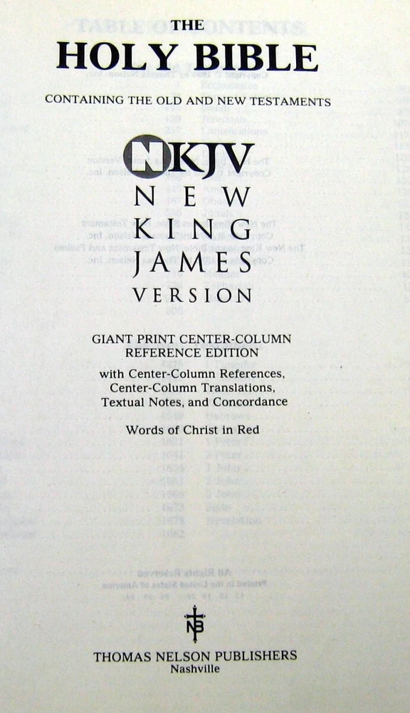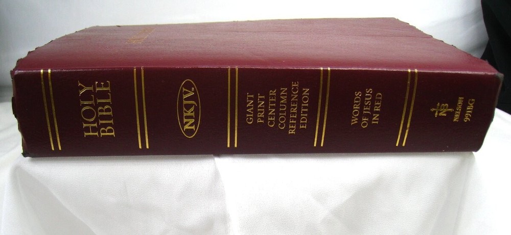 Holy Bible New King James Version Giant Print Center Column Reference Edition * Pre-owned: with some edge wear, scuff marks/shelf marks, * Interior Pages: have no creasing, tearing, names, initials, store stamps, missing pages. Nice square book. * Analysis: note photos for your condition analysis. ~~~~~~~~~~~~~~~~~~~~~~~~~ * Money Back Guarantee! * Next Day Shipping! * Quick response to questions * Photos of actual items you will receive THANK YOU FOR VISITING
