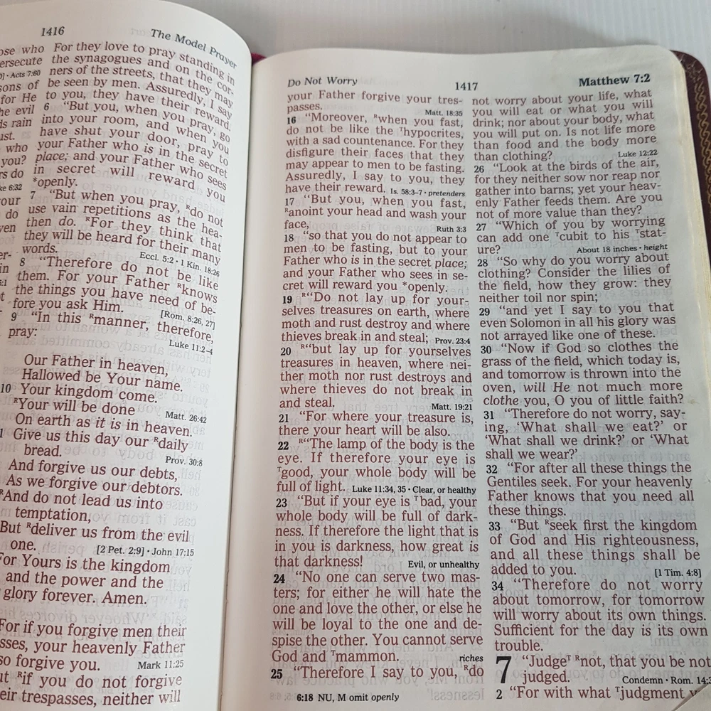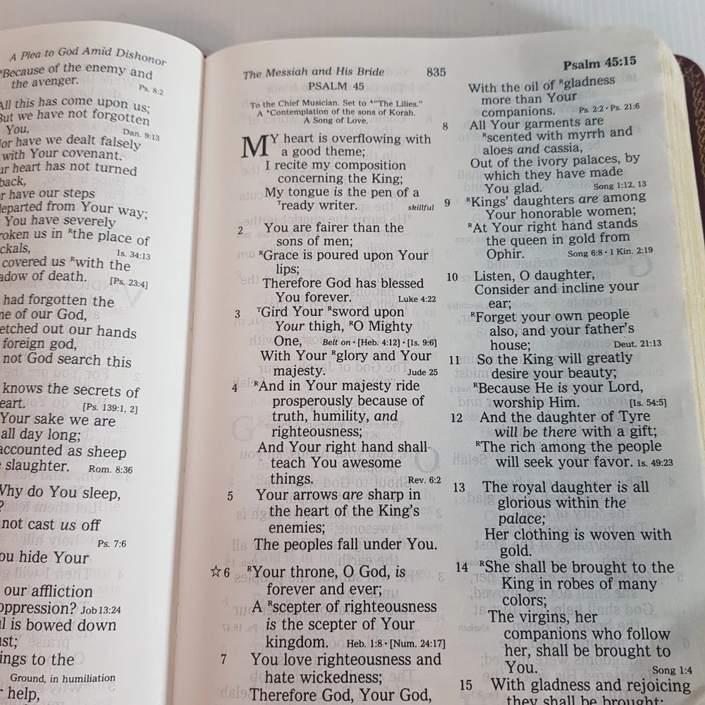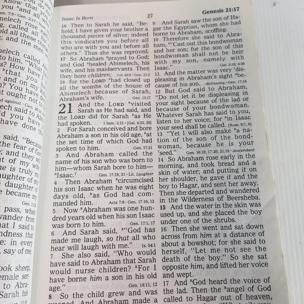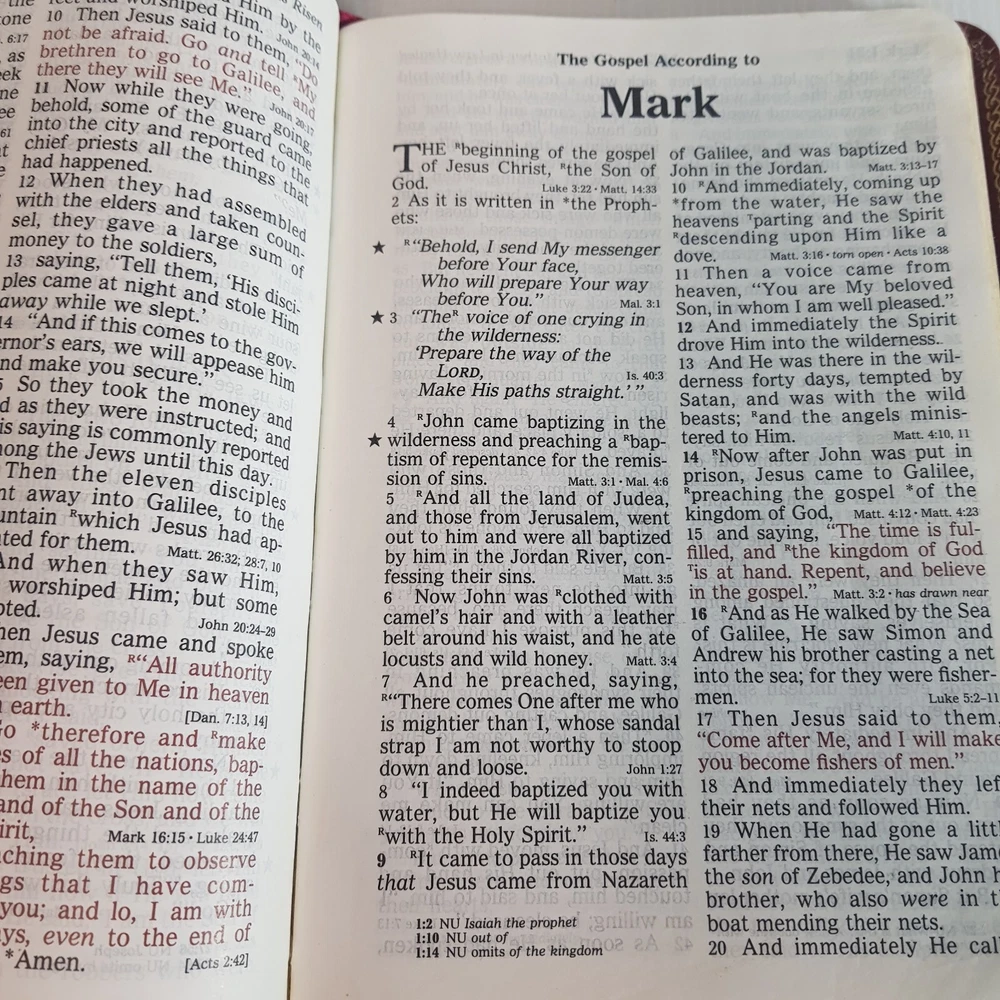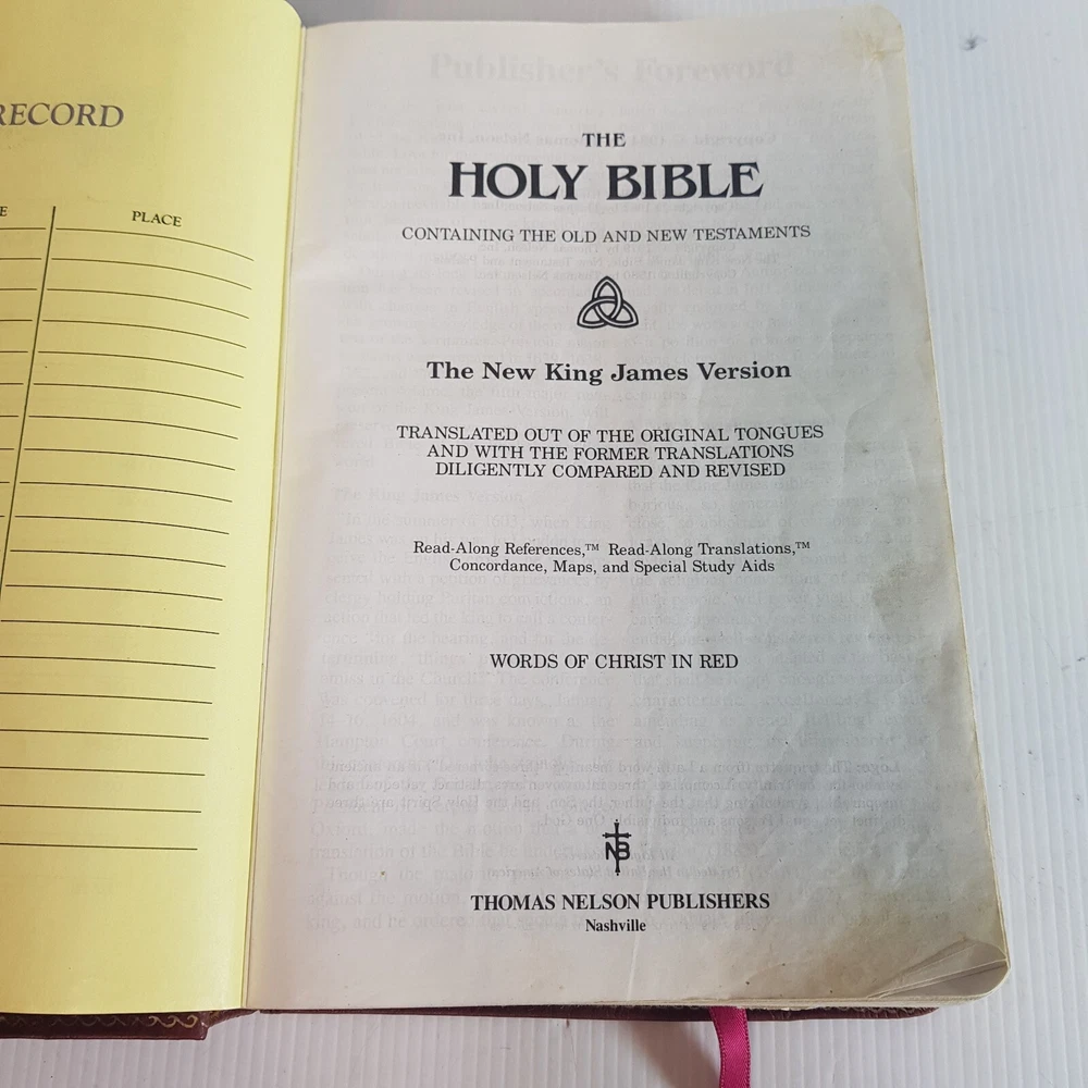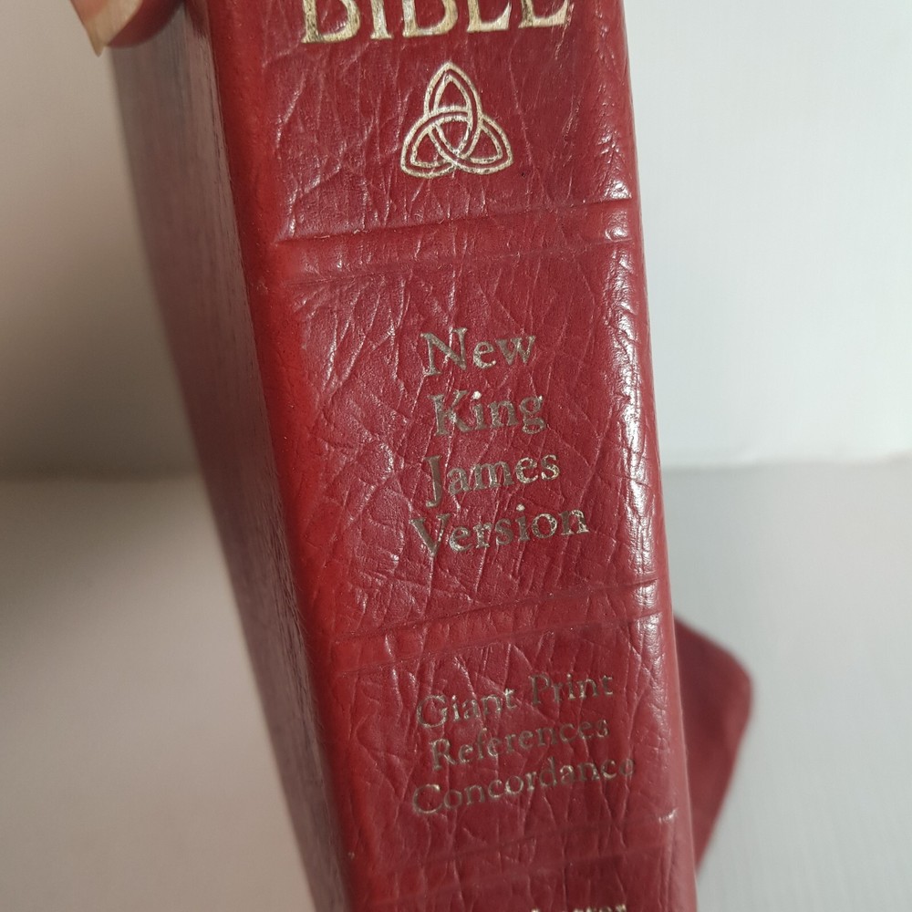 Dive into the timeless wisdom of the Holy Bible New King James Version, presented in a user-friendly Giant Print Reference Red Letter Edition. This hardcover treasure, published by Thomas Nelson Publishers in 1984, offers a comfortable reading experience with its large print and leather-bound design. Measuring at 21.5 cm in length and 5.5 cm in height, it's a substantial addition to any personal library or study. Tailored for a wide audience, from ages 9-12 to young adults and adults, this Bible is not only a spiritual guide but also a piece of vintage literature. Its rich content, encompassing both the Old and New Testaments, is perfect for those seeking religious enlightenment and spiritual growth. The Red Letter Edition distinguishes Jesus' words in red, adding an extra dimension to your reading journey.