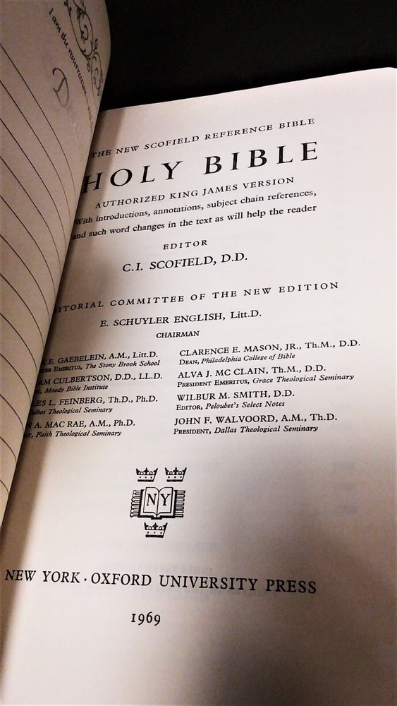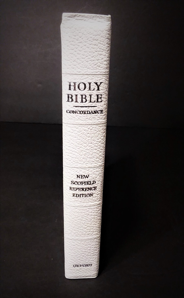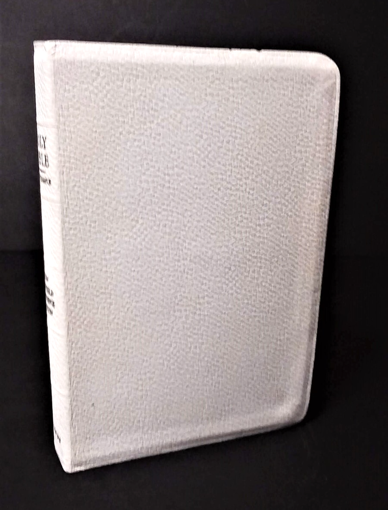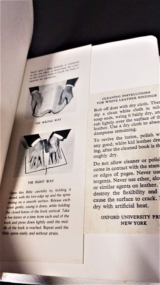 Unused. Very attractive. The only flaw is some chipping to the top edge of the front cover (last photo)...just an effect of age. Inside has original cleaning and care instructions. Published 1969 by Oxford University Press. Bible measures 5.75" x 8.25". Happy buying.
