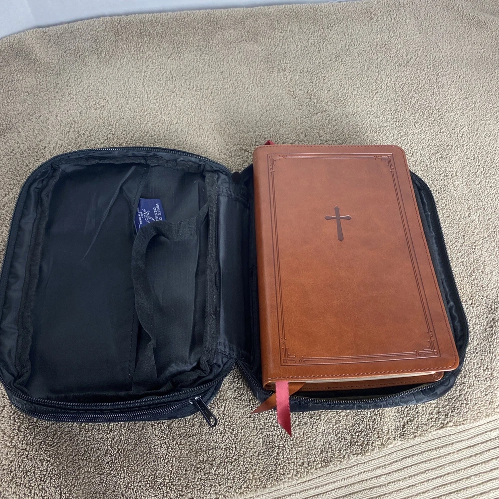Holy Bible Personal Size NKJV Large Print Ref Brown Leather & Bible Cover Great pre-owned condition, like new, no markings on the pages, no folds, very nice!, Review all photos before buying; Our items are all carefully examined, photographed and stored in a smoke free environment. Colors may be slightly different depending on the lighting. I promptly pack and ship with great care. Any questions about this item feel free to message me and I'll be happy to answer you. Free No Hassle 30 Day Return Policy on all of our items unused . Select "Didn't Like It" And We Will Pay For The Return Shipping. I'll process your refund after verifying it is in same condition as when purchased. Combined shipping : We are happy to combine shipping on a multi order, please just send us a message. Alaska, Puerto Rico & Hawaii: Will require additional shipping, please inquire before buying Thank you for visiting my listing.