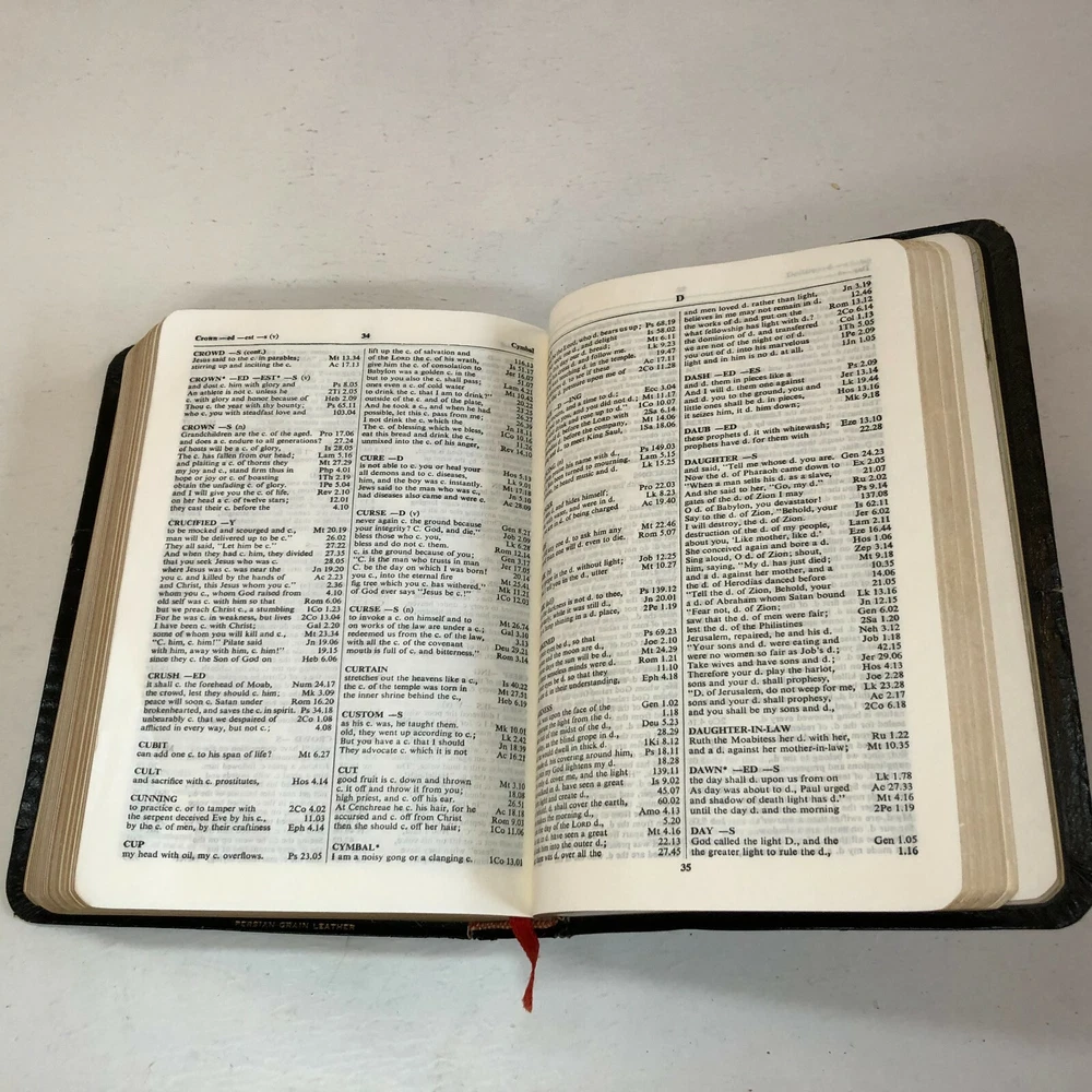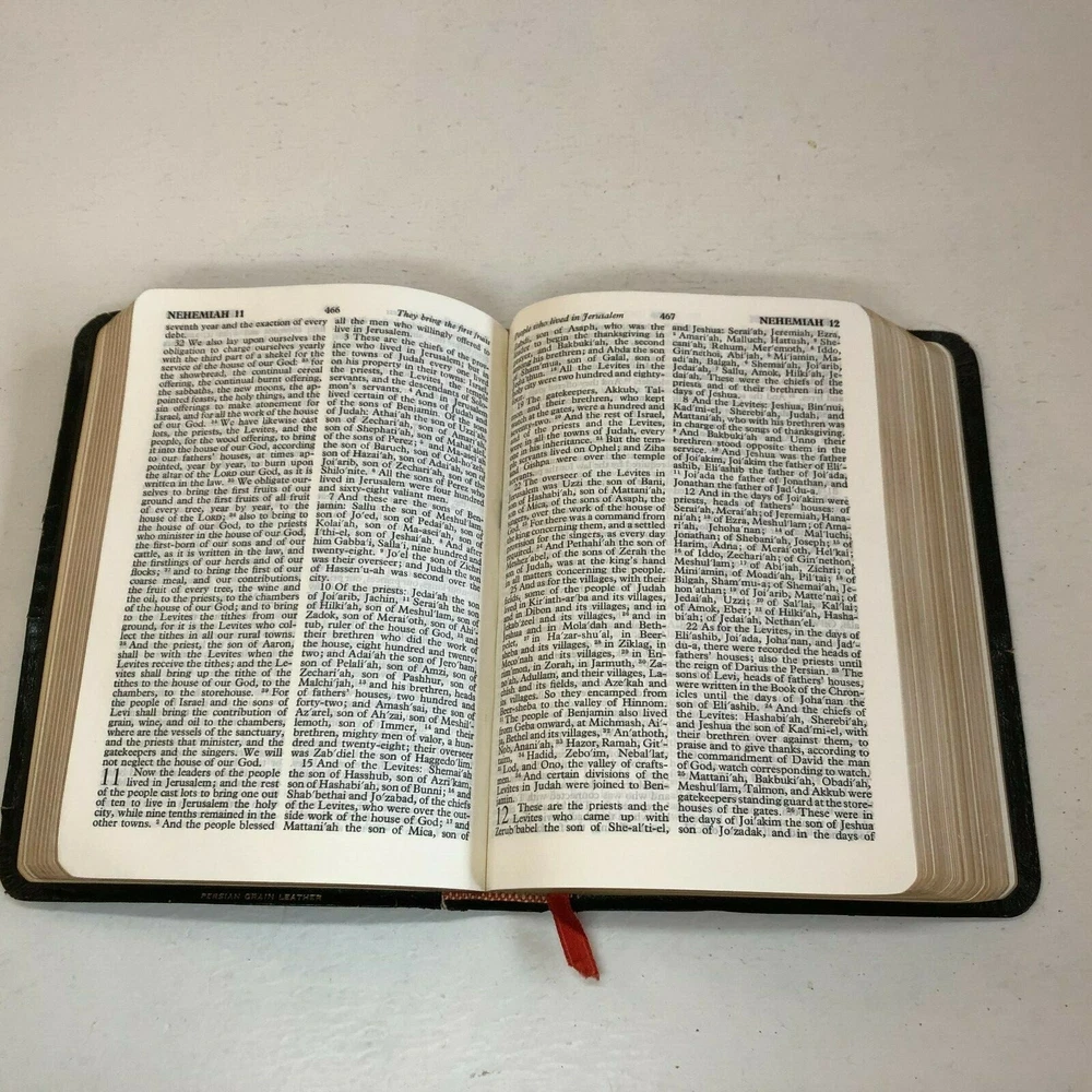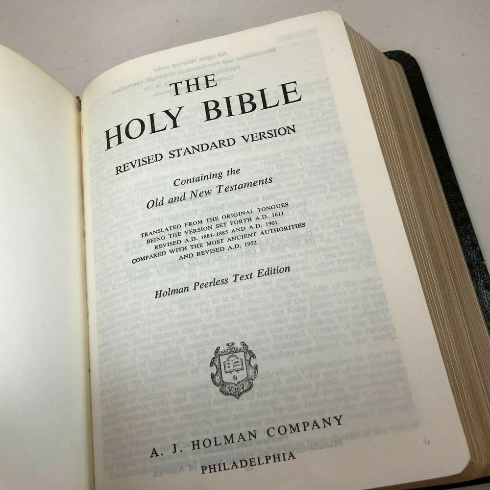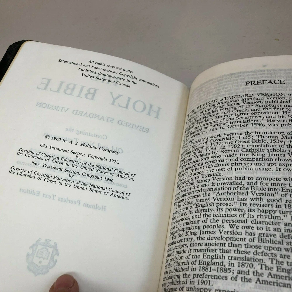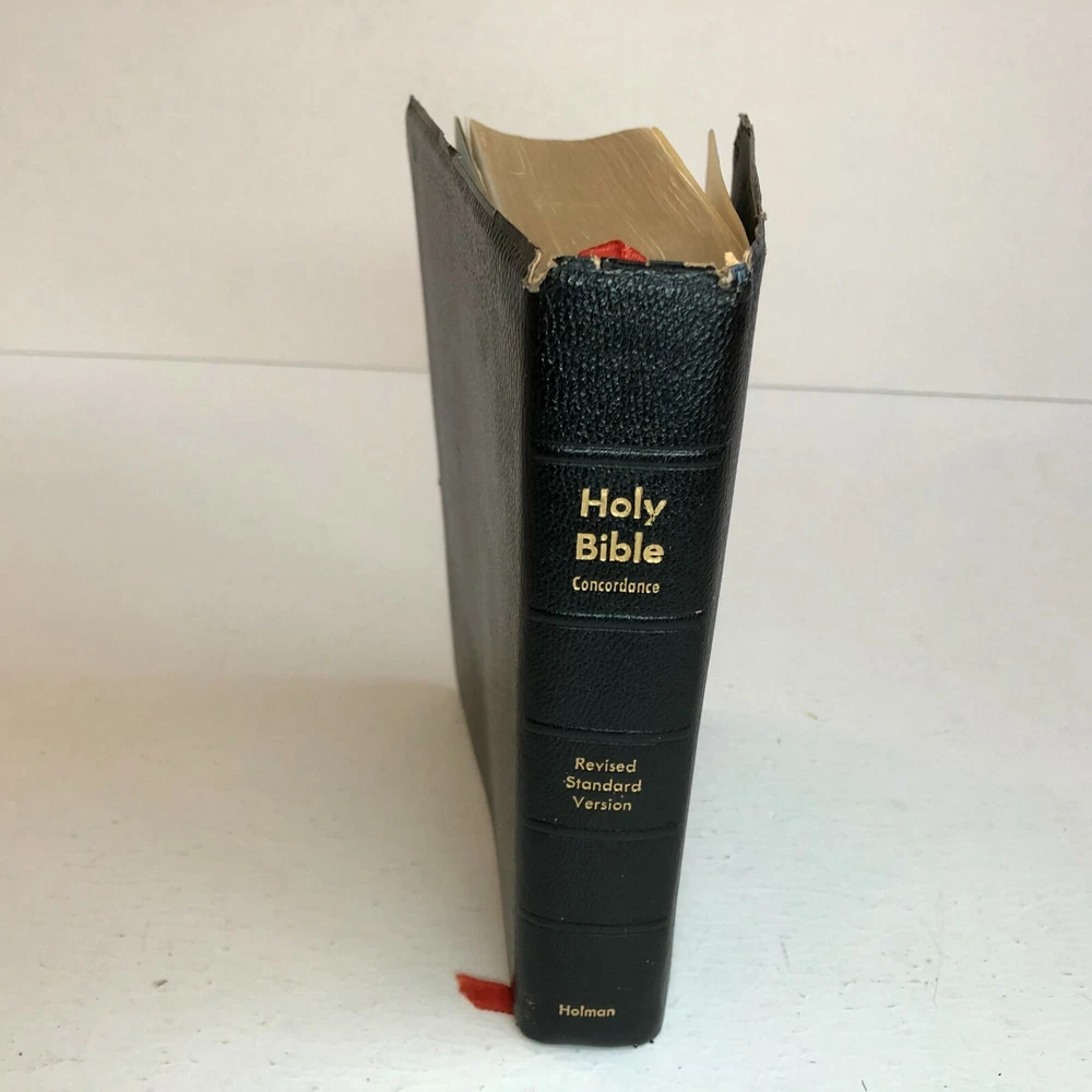 Holy Bible RSV Holman Leather Verse Peerless Text Edition Concordance 1962 Black Persian Grain Leather 7.5" x 5.5" Some cracking of leather. No markings On Pages. Name on Front Cover. Please see pictu...