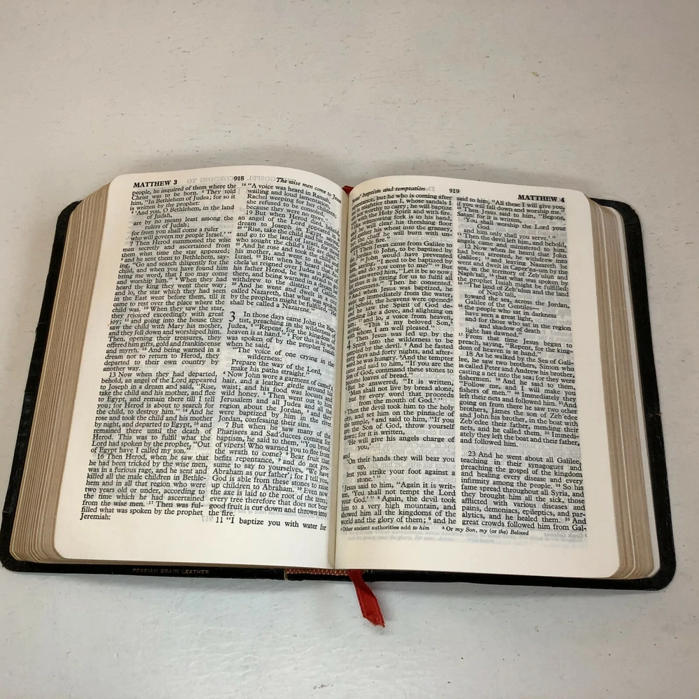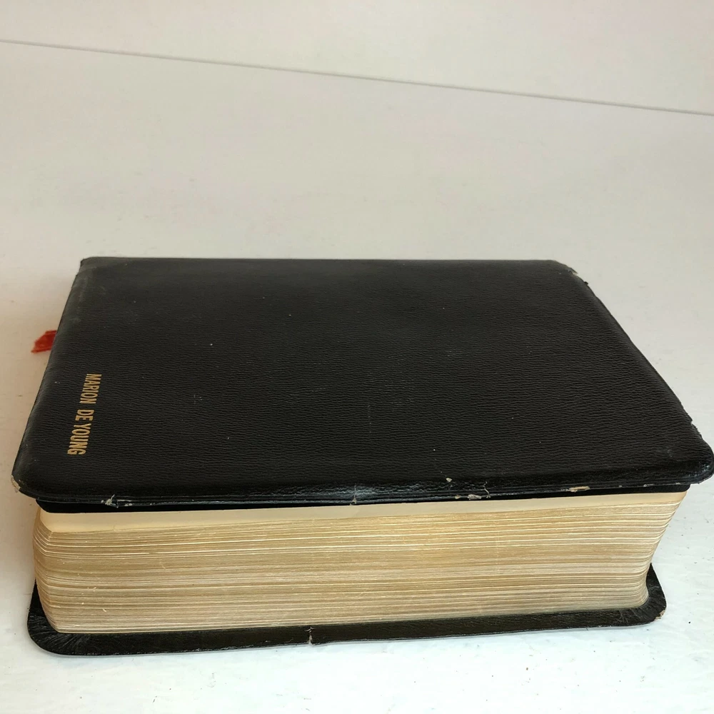 Holy Bible RSV Holman Leather Verse Peerless Text Edition Concordance 1962 Black Persian Grain Leather 7.5" x 5.5" Some cracking of leather. No markings On Pages. Name on Front Cover. Please see pictures.