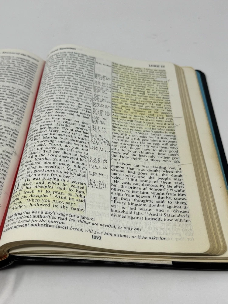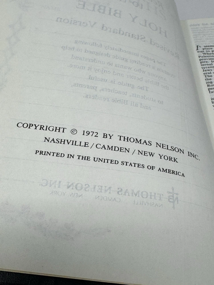 Holy Bible RSV Revised Standard Version Second Edition Reference Concordance Black Leather Bible is in good preowned condition.
