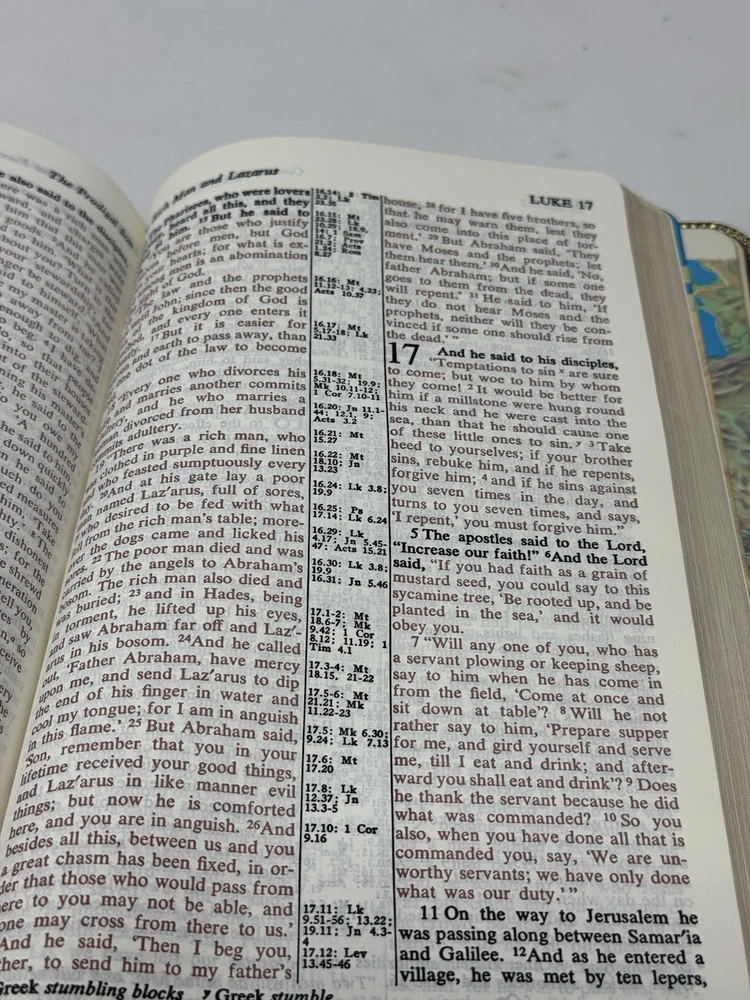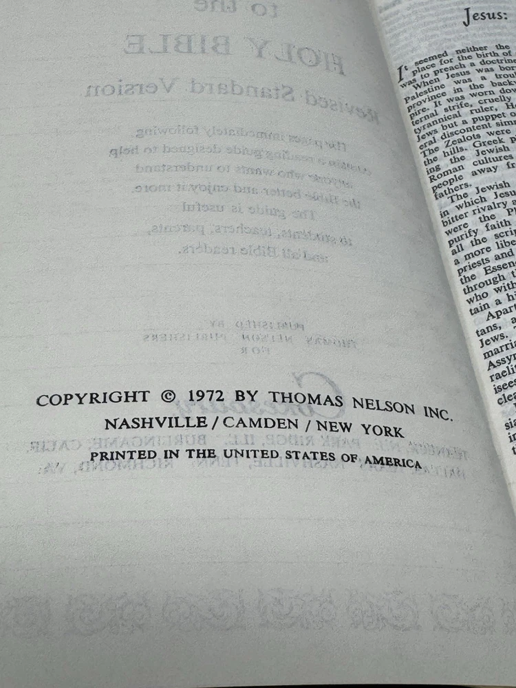 Holy Bible RSV Revised Standard Version Second Edition Red Letter, Reference, Concordance Brown Leather Golf Leaf Bible is in excellent preowned condition.