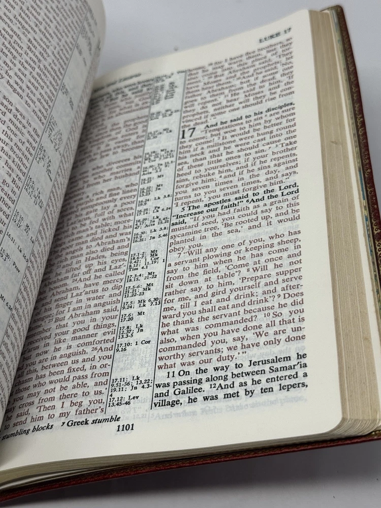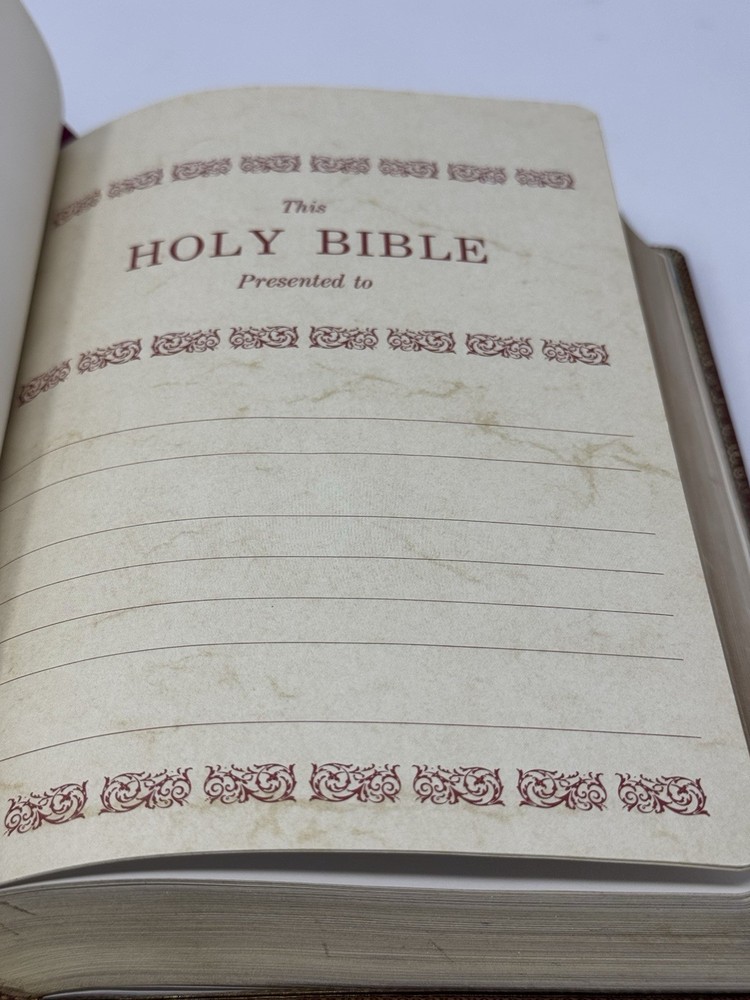 Holy Bible RSV Revised Standard Version Second Edition Red Letter, Reference, Concordance Red Leather Golf Leaf Bible is in excellent preowned condition.