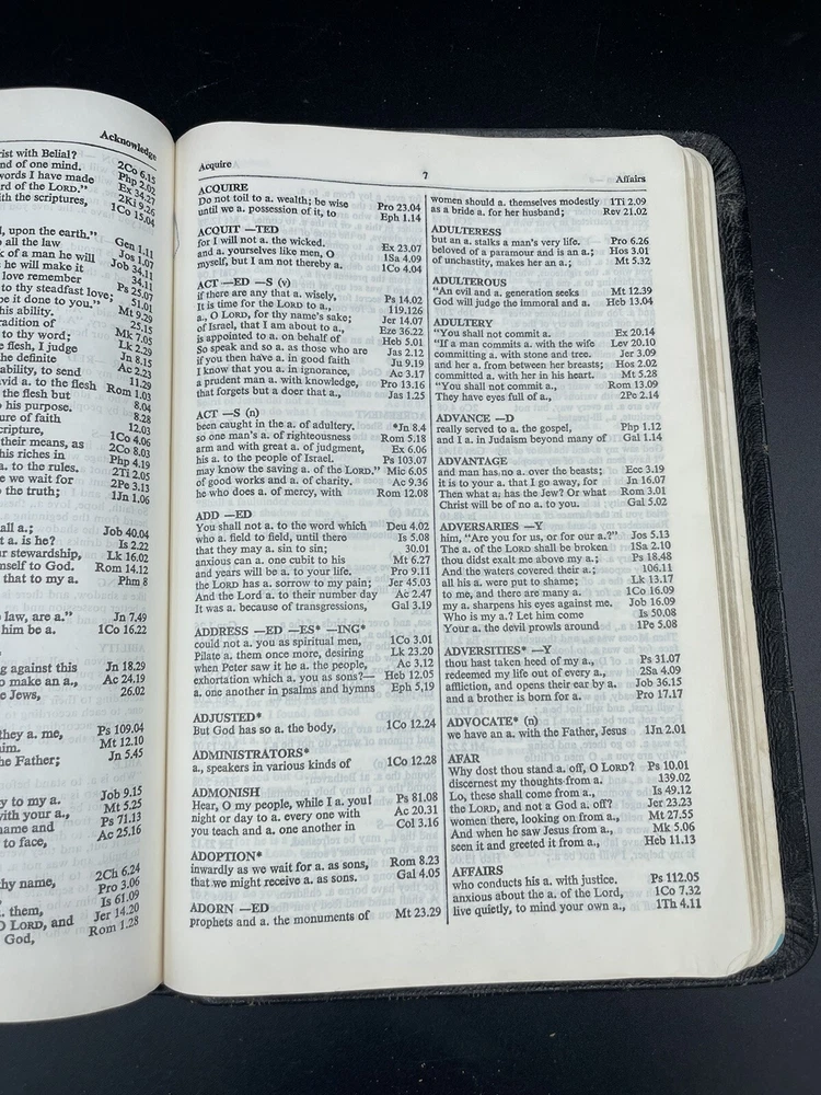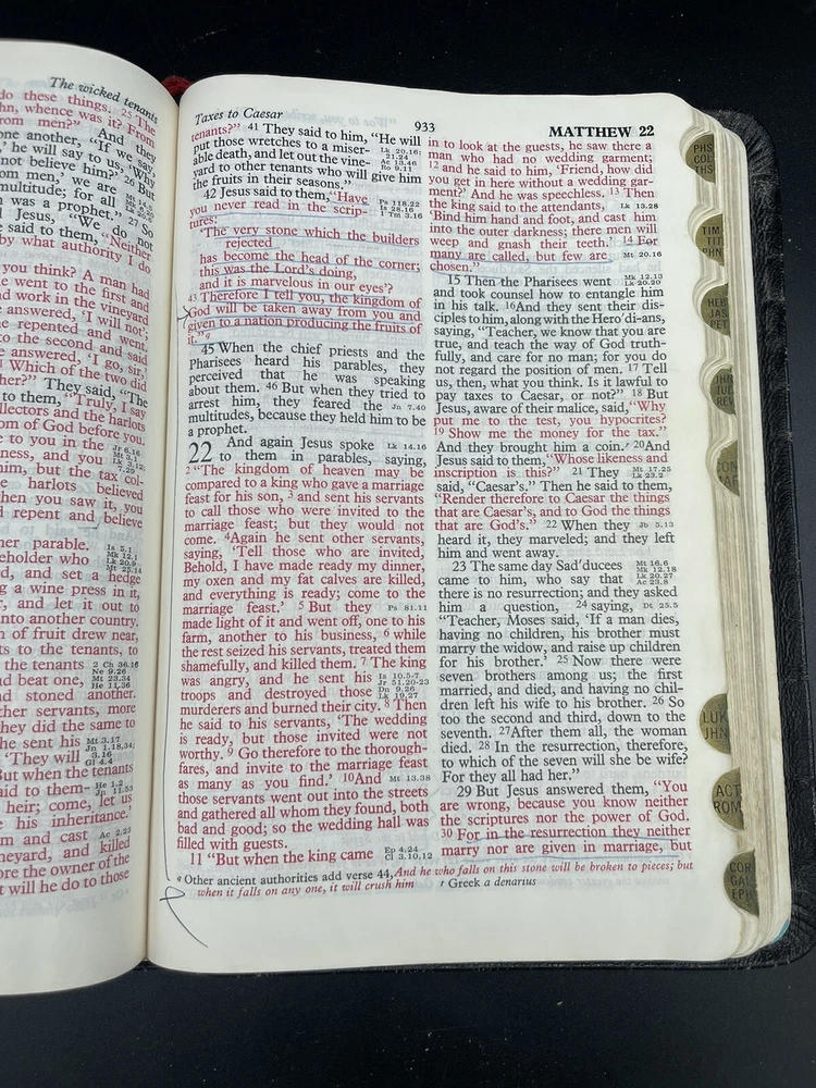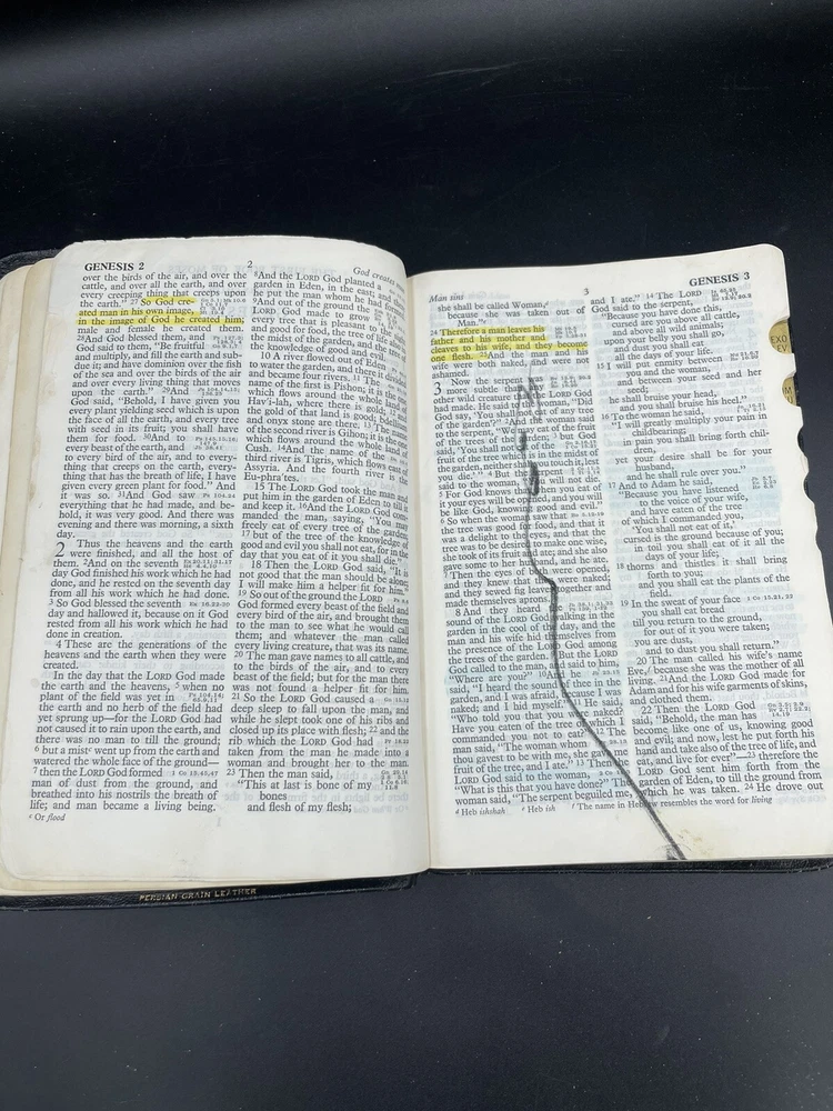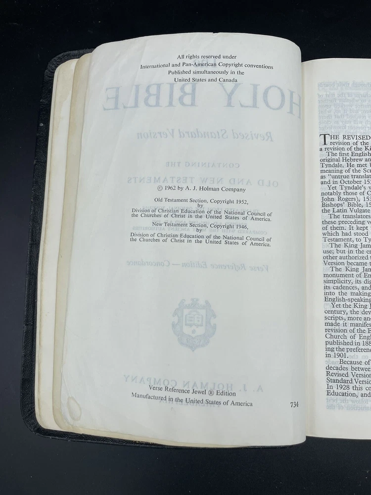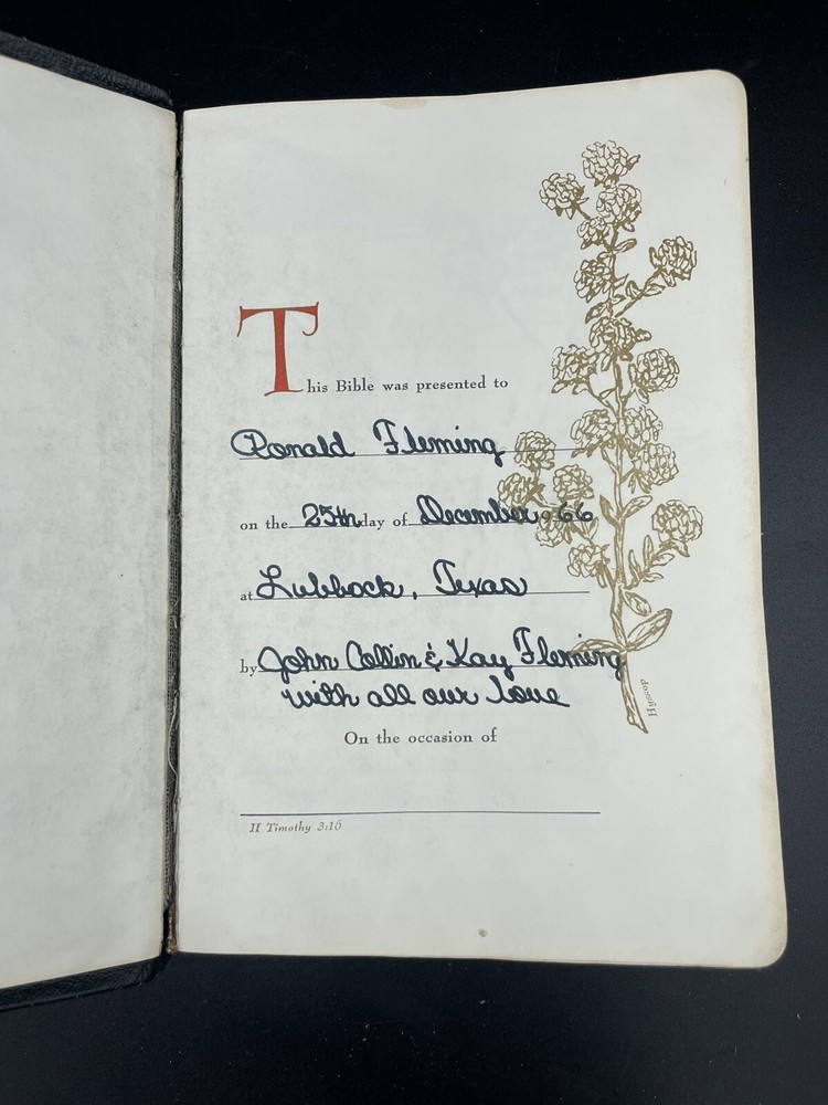 Bible is in used condition. May have underlining or writing on inside pages. Title page is filled in. Edges have some wear. See pictures to ensure you are satisfied with the condition. Thank you for shopping with us! We work to provide a variety of options from vintage clothing and hats to new collectibles with a smattering of replacement pieces and ugly Christmas clothing. We’re happy to answer any questions you have. Check out our other listings! We will gladly combine shipping. And make sure to follow our store.
