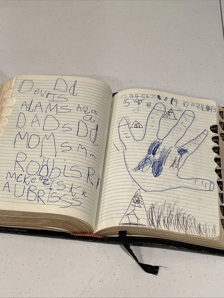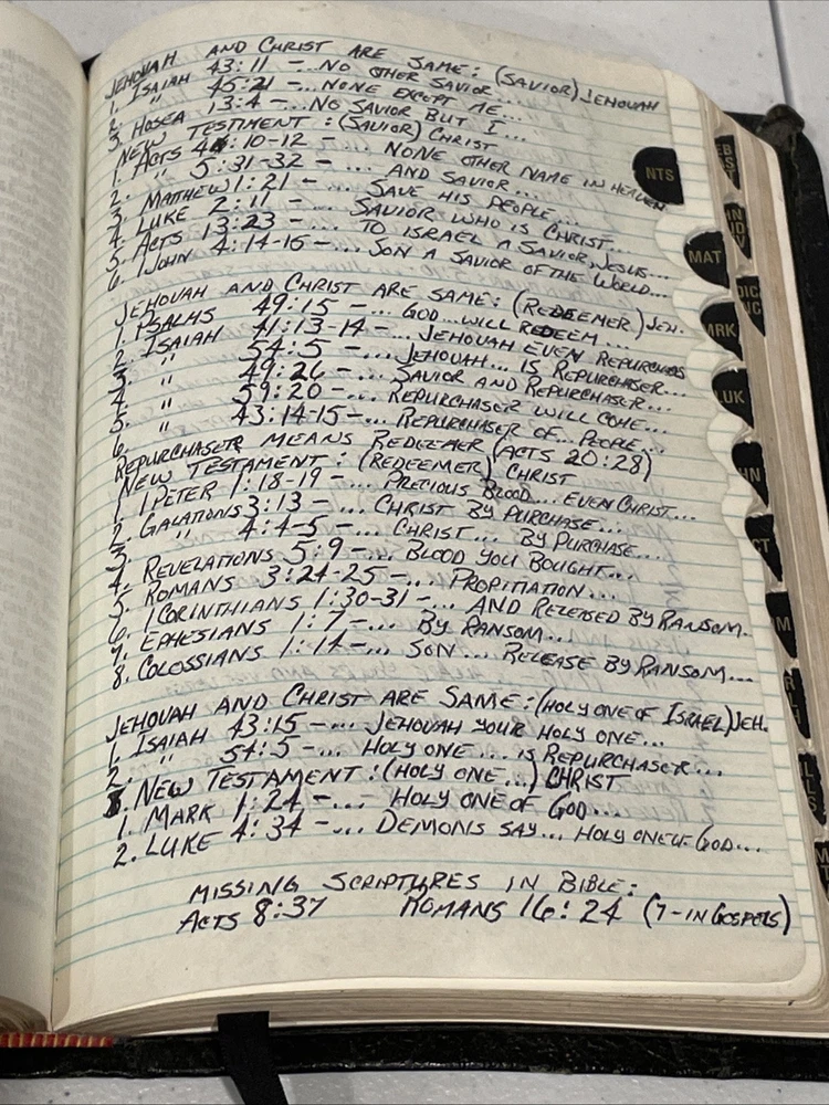 LDS missionary bible. Notes in section, children’s doodling on journal pages. A fun vintage bible to explore. Will ship with care!
