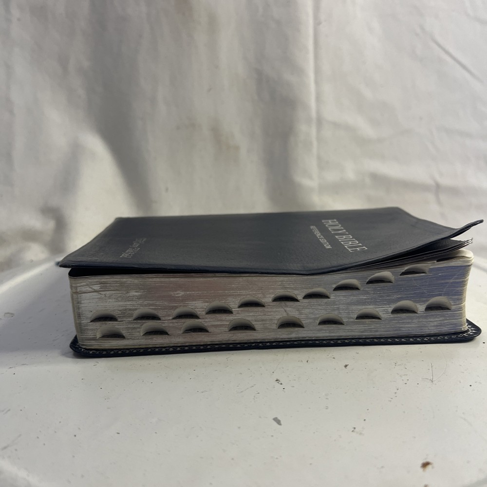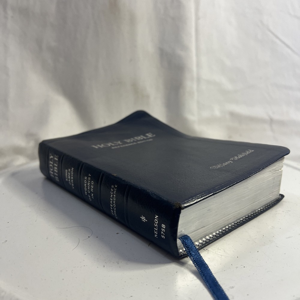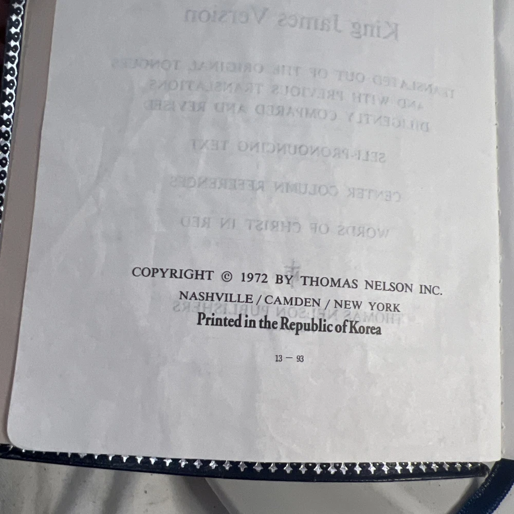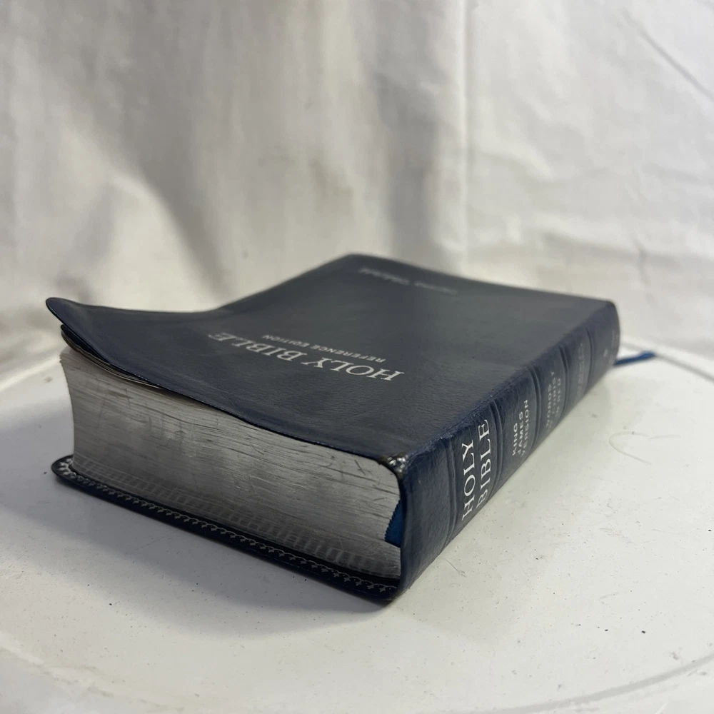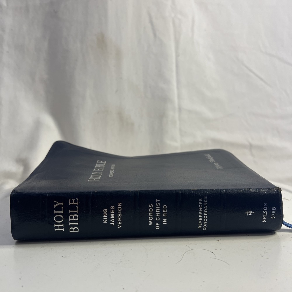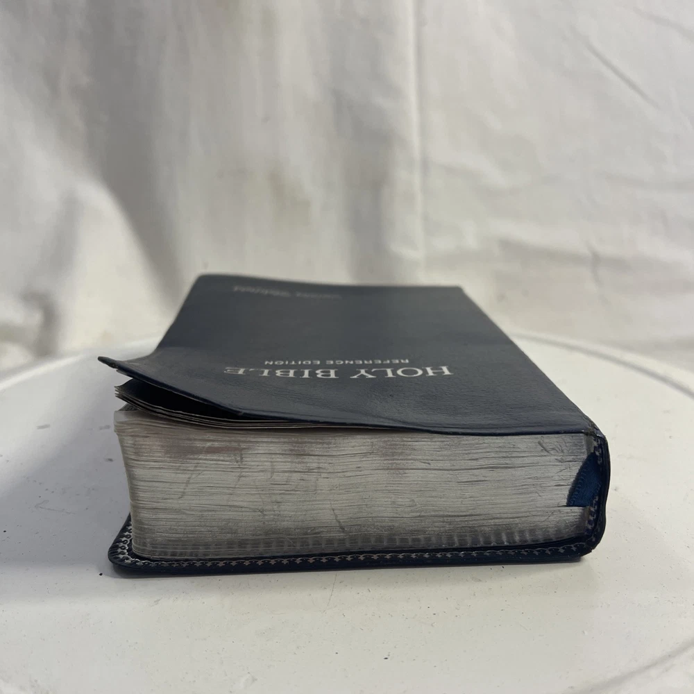 This vintage KJV Bible is absolutely stunning! The blue bonded leather has aged beautifully, and the red lettering makes key verses pop. Despite some normal wear, it feels incredibly sturdy and has such character. A true treasure for any collector!