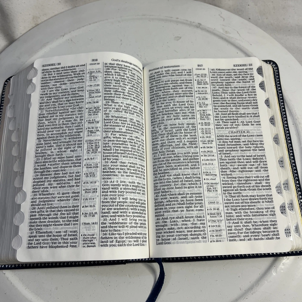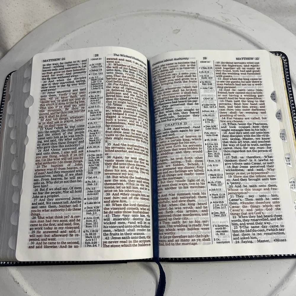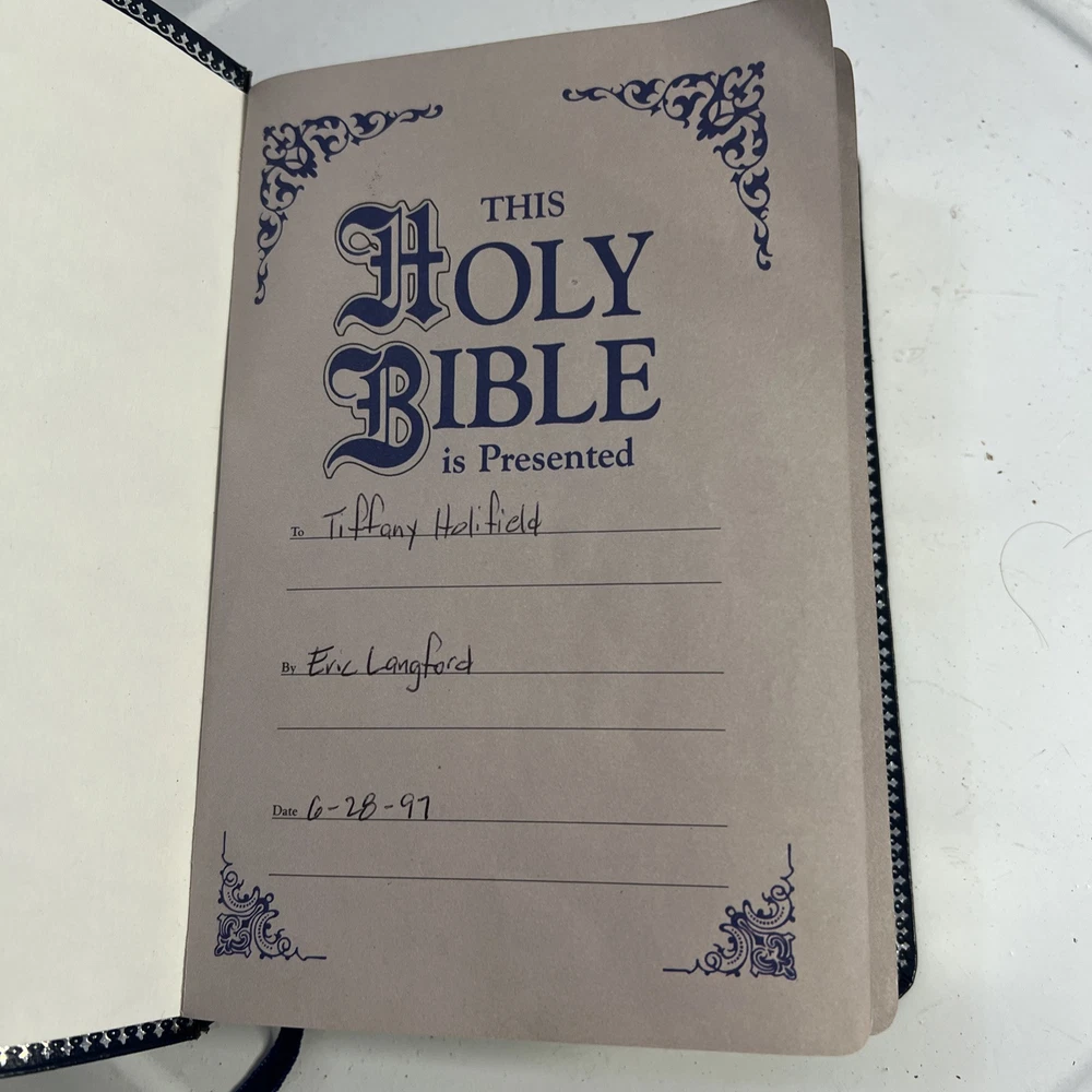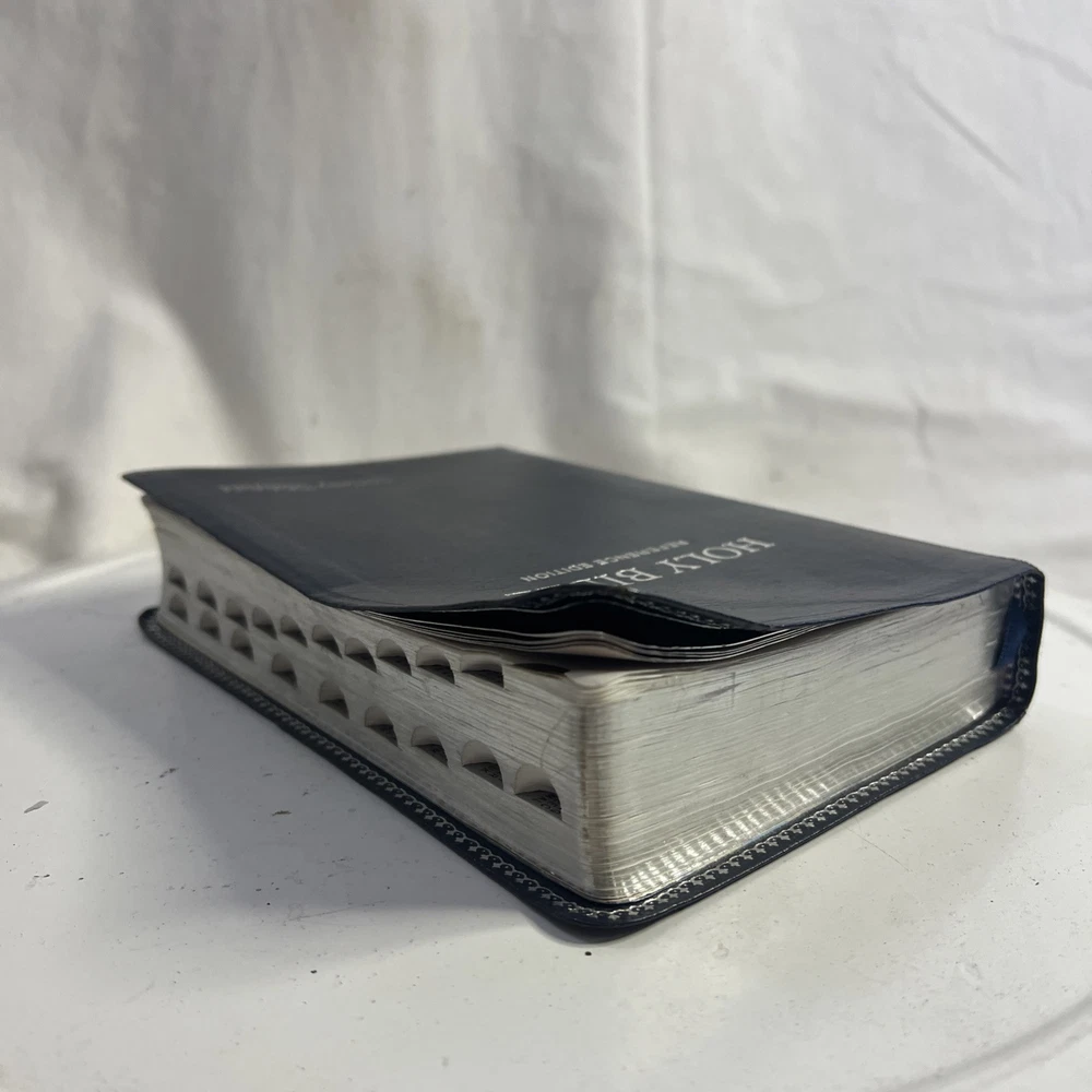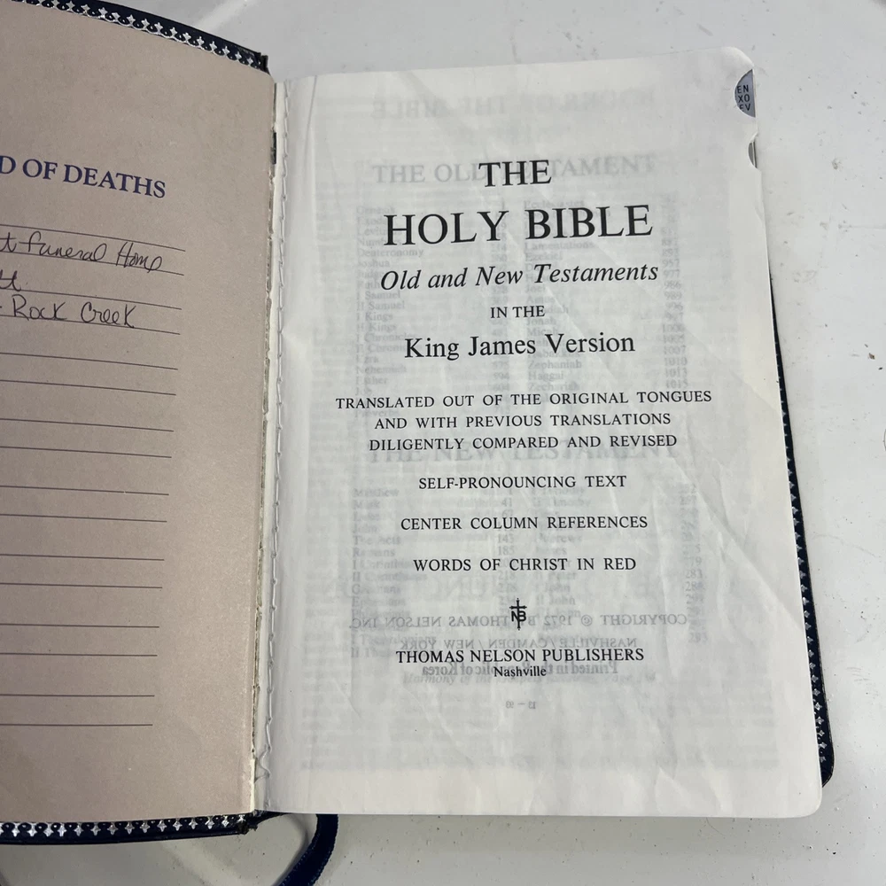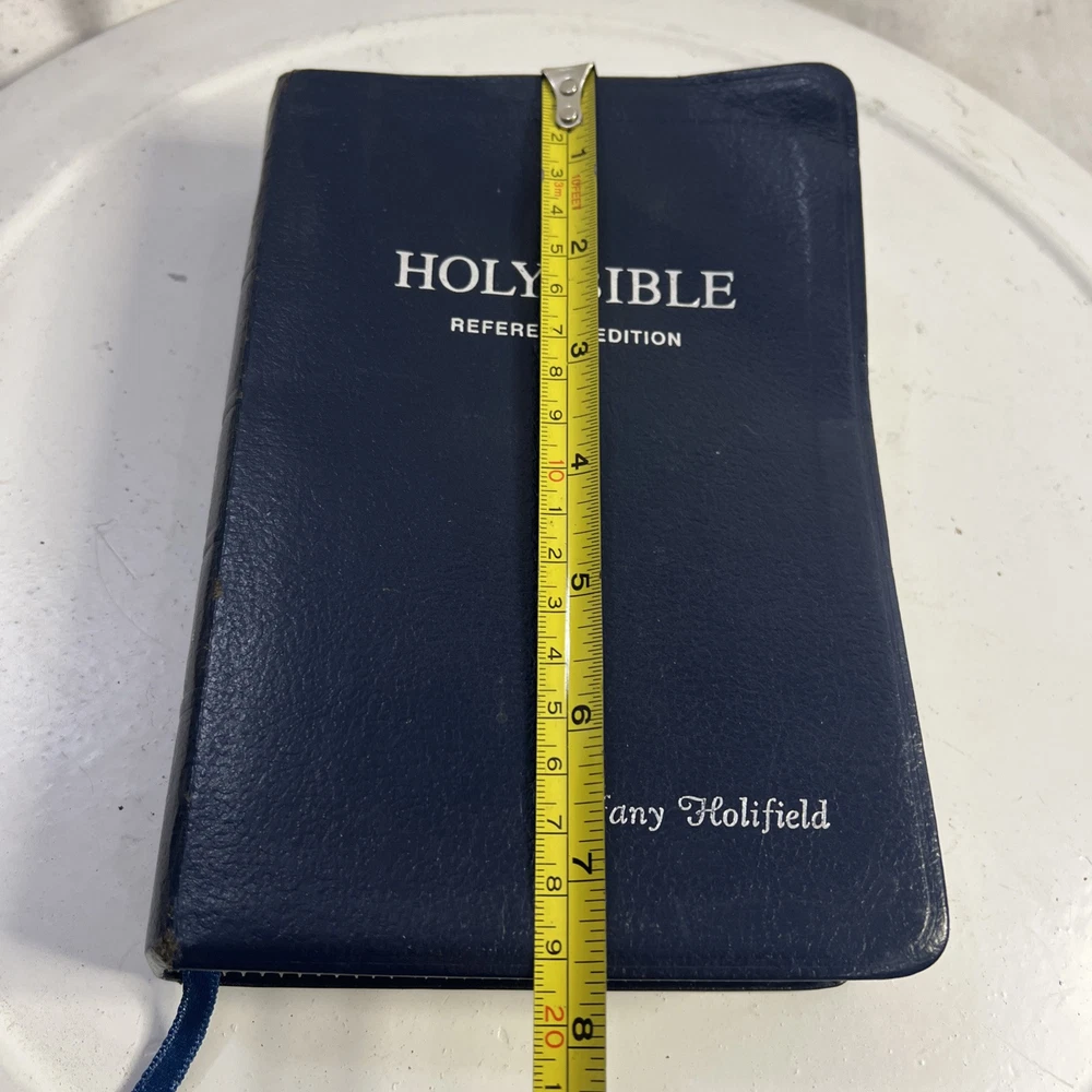 This vintage KJV Bible is absolutely stunning! The blue bonded leather has aged beautifully, and the red lettering makes key verses pop. Despite some normal wear, it feels incredibly sturdy and has such character. A true treasure for any collector!