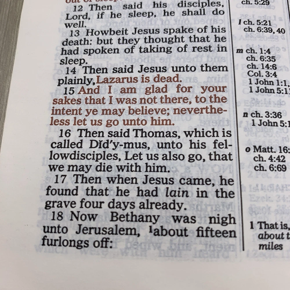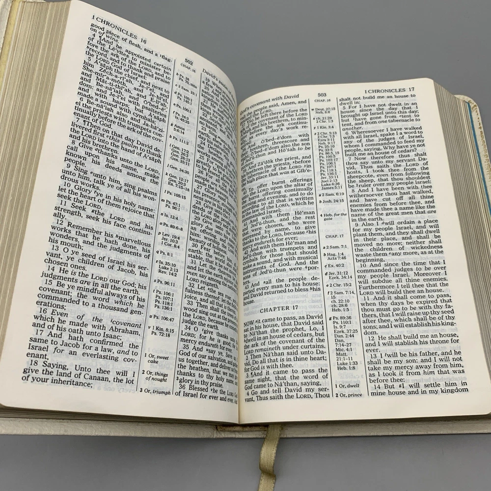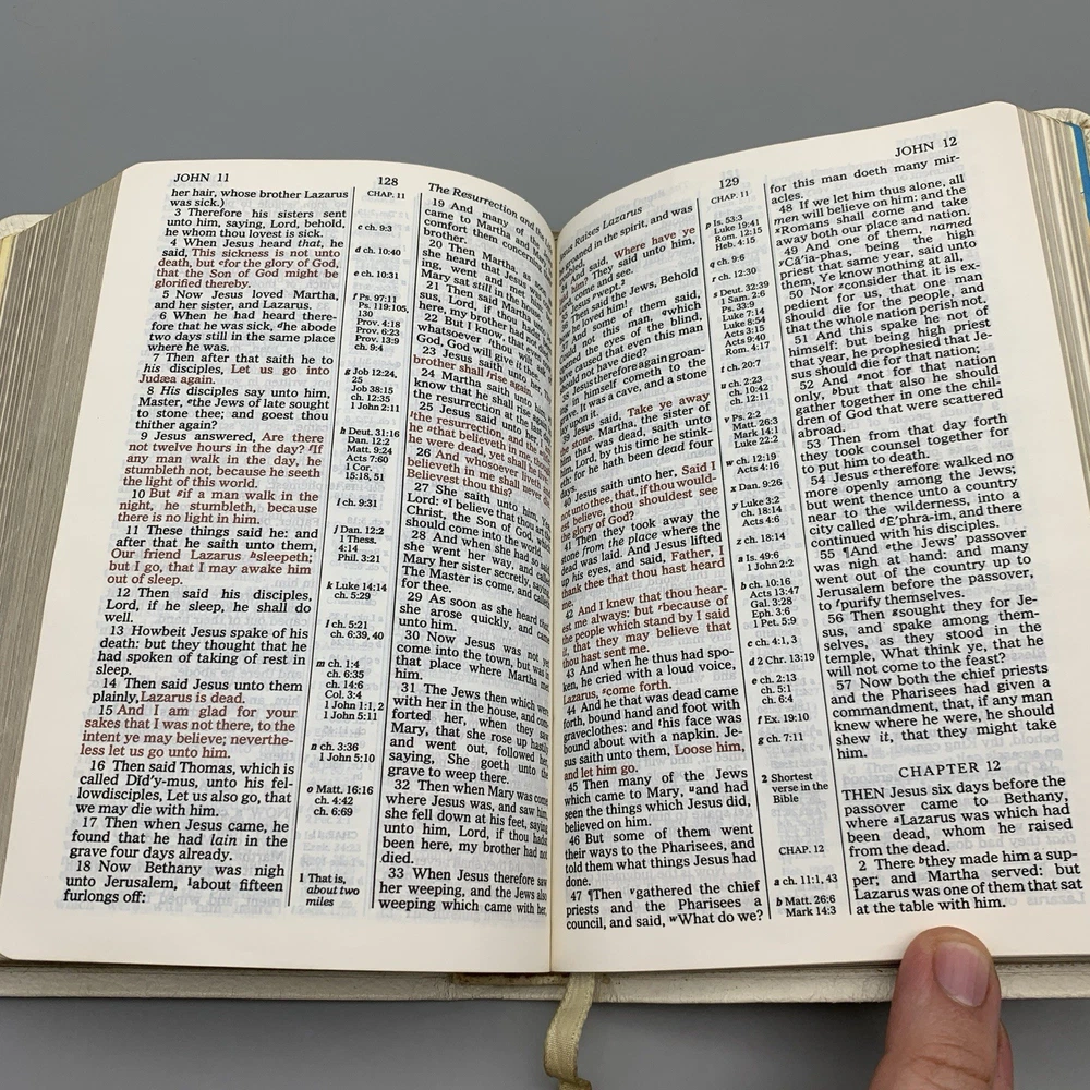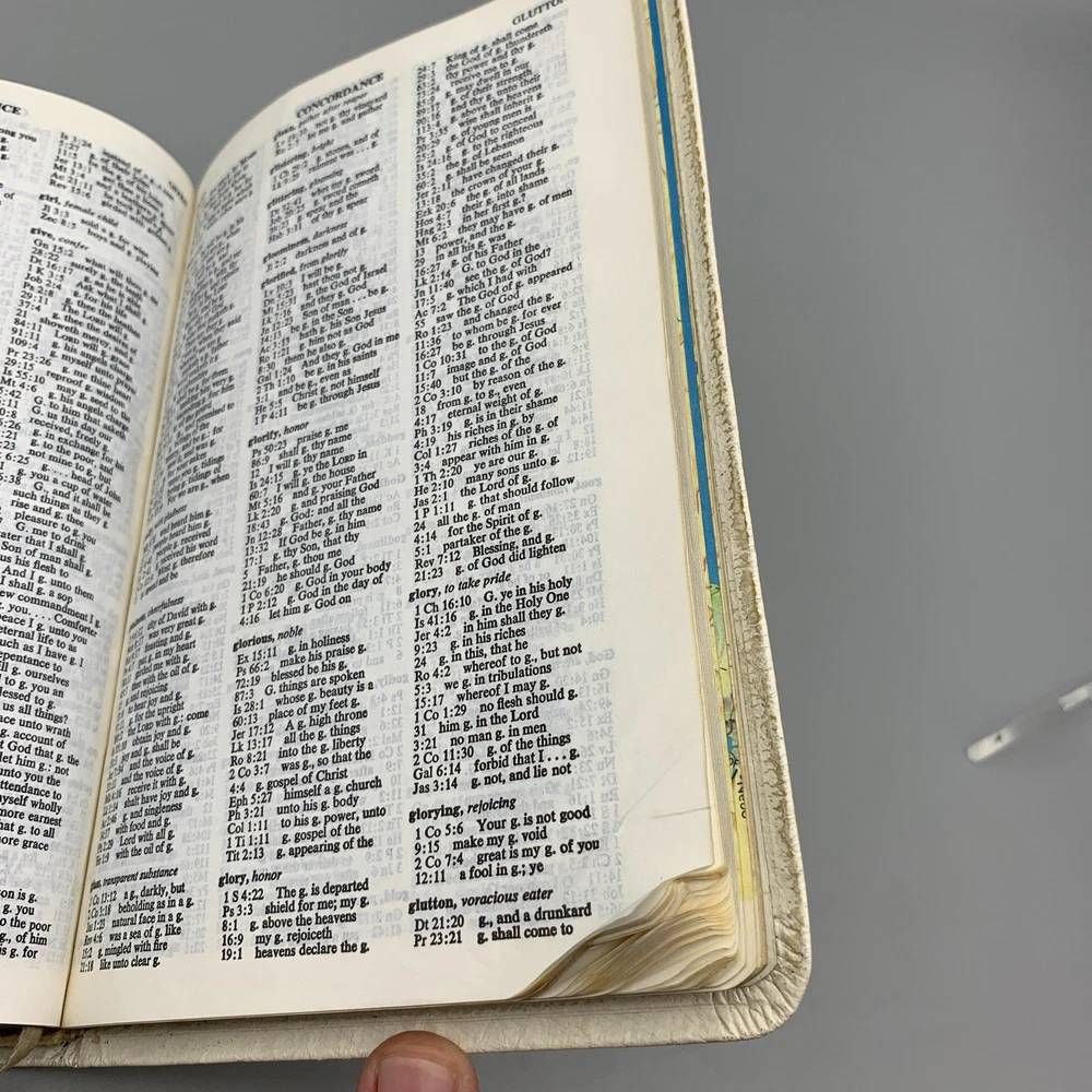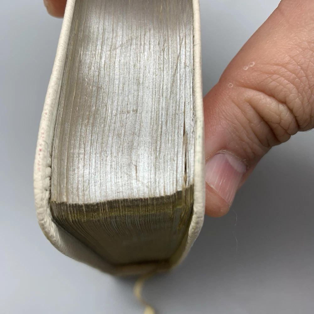 This beautiful white leather Bible is in excellent condition with no damage. I love the classic red letter text and the personalization gives it such a warm, cherished feel. A truly special find!