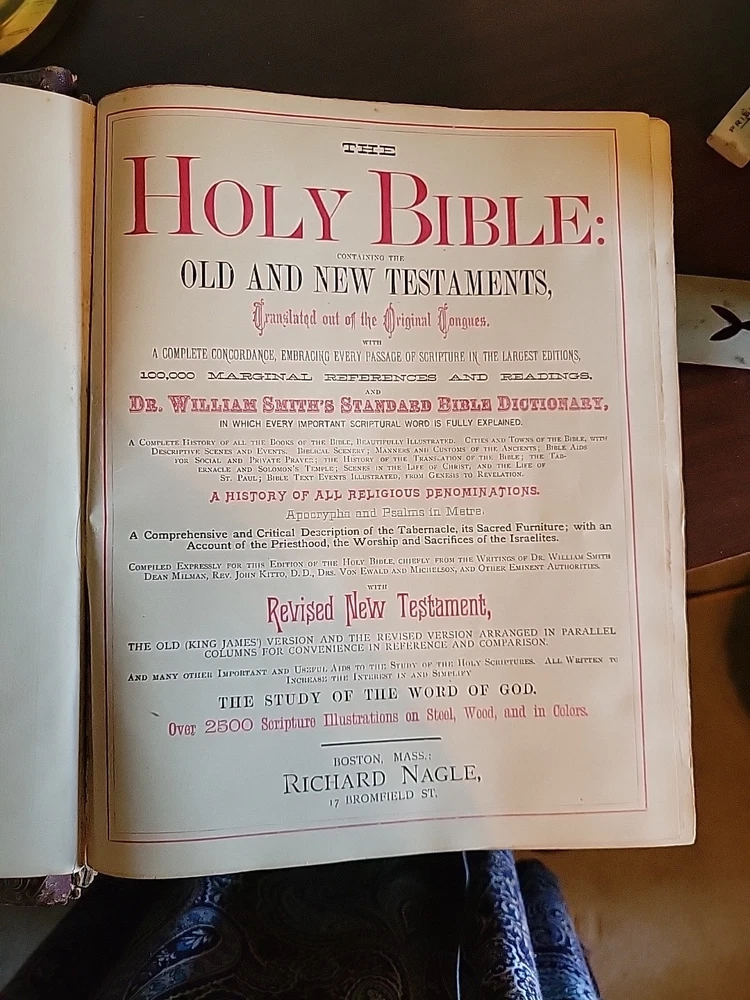 This rare and collectible edition of the Holy Bible includes both the Old and New Versions of the New Testament, printed in 1884. The binding is made of high-quality leather and was published by Richard Nagle in Boston. The book is written in English and authored by various writers, making it a valuable reference for Christianity and Bibles. The book is in excellent condition and is a must-have for any collector or religious scholar. It is categorized under Books & Magazines and Antiquarian & Collectible. This edition of the Holy Bible is a timeless piece that will provide inspiration and guidance to its readers.