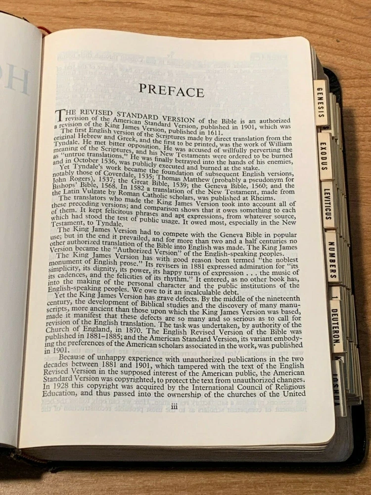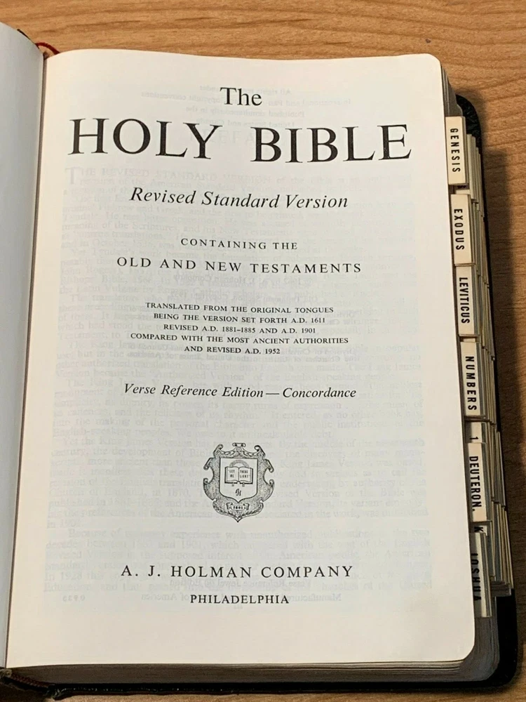 Holy Bible: Revised Standard Version, Verse Reference Edition - Concordance, Red letters, 1962 soft leatherette cover with index edges