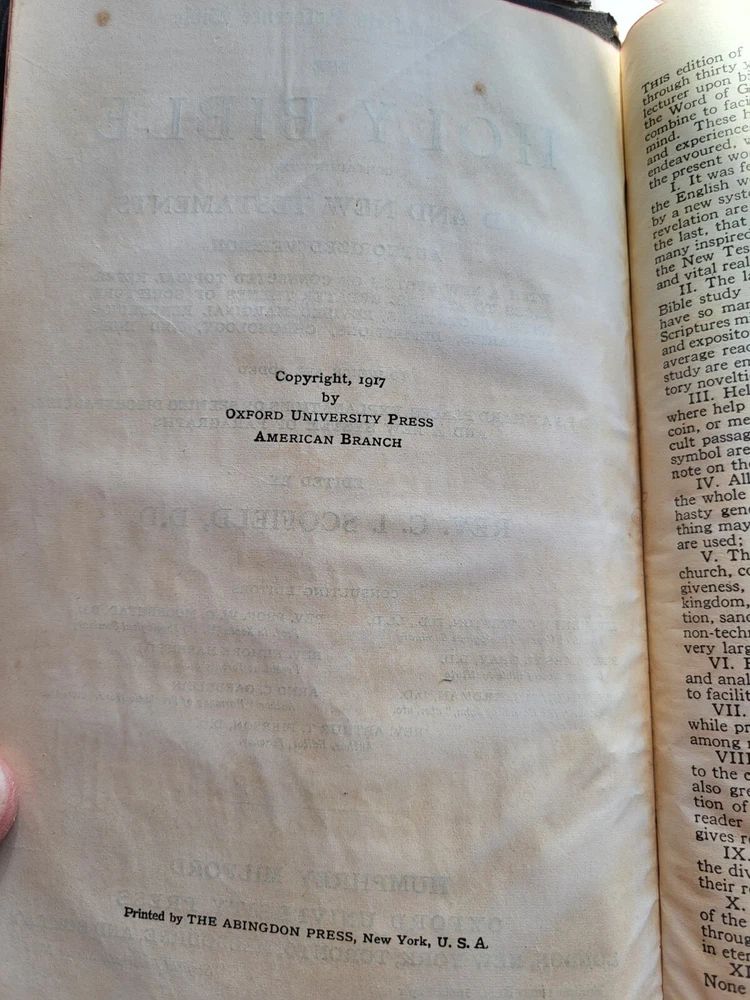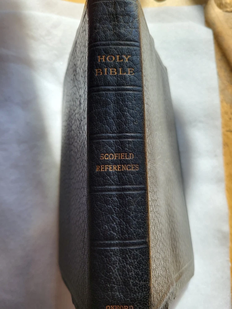 This antique Holy Bible Scofield Reference Edition Concordance Oxford 1917 is a must-have for collectors and believers alike. The beautiful leather binding adds to its durability and elegance. This Bible is perfect for those who want to delve into the Christian faith and seek a deeper understanding of the Bible. With its comprehensive reference material, this Bible is an invaluable tool for anyone who wants to study the Bible. The topics covered in this Bible are Christianity and Bibles, making it an excellent resource for those who are seeking spiritual growth. This antique Bible is a rare find and a great addition to any collection. Binding is broken in one section other than that it's in good shape. See photos