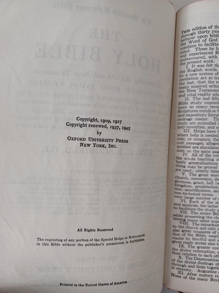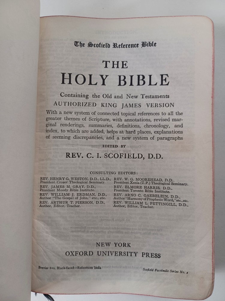 Holy Bible Scofield Reference Edition KJV Black Morocco Leather 1945 Oxford very good condition, tight binding, clean and flat, see pictures for details More books and bibles in our store Buy with confidence, shipped with care Shipped USPS