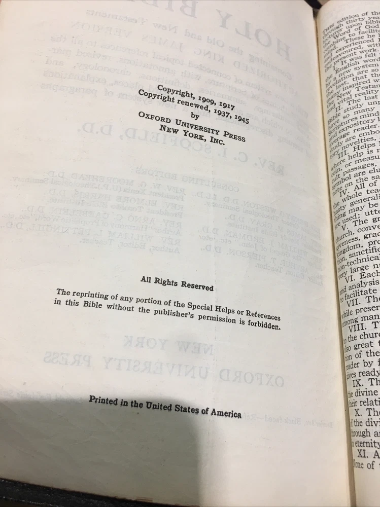 Holy Bible Scofield Reference Edition Oxford Press Leather Binding 1945.