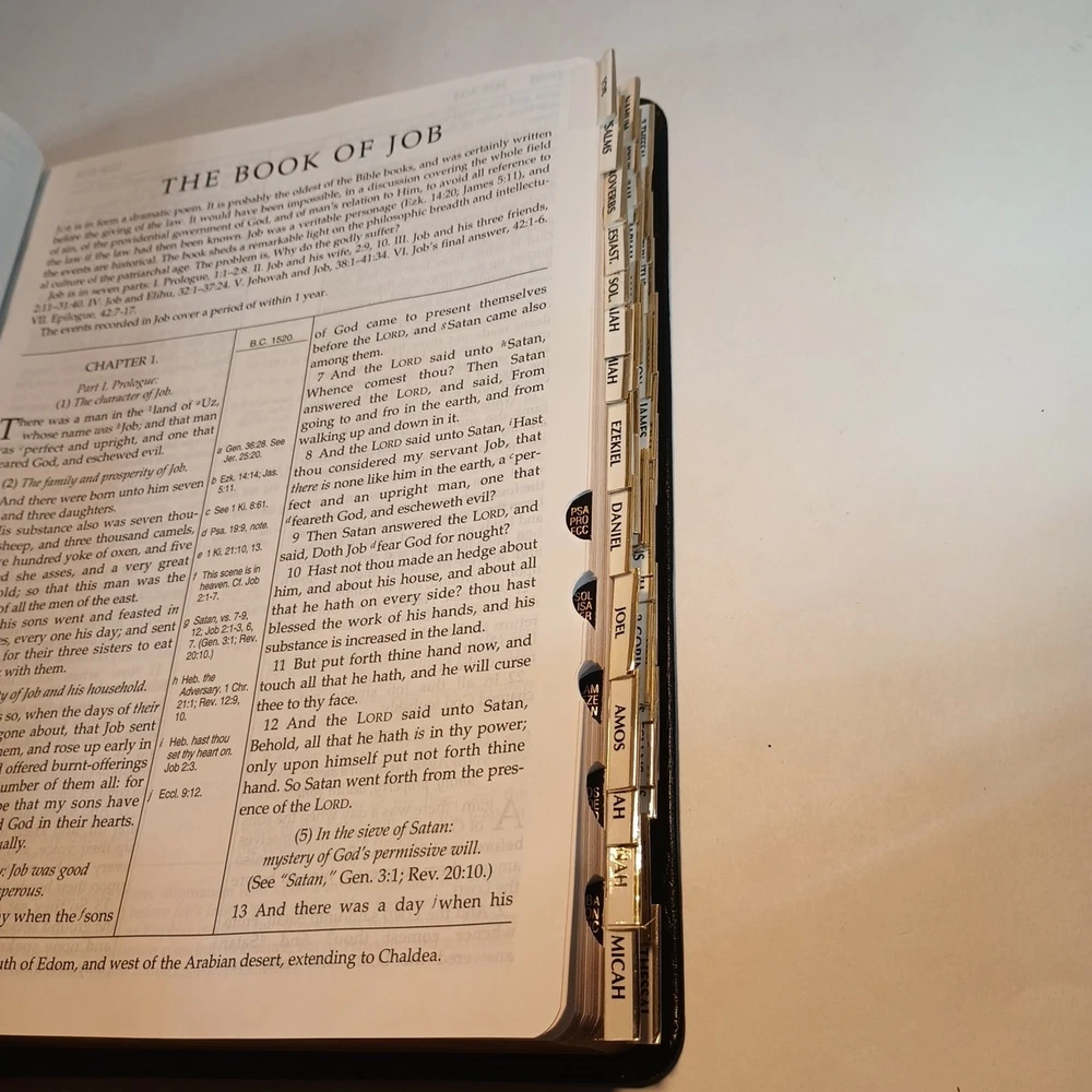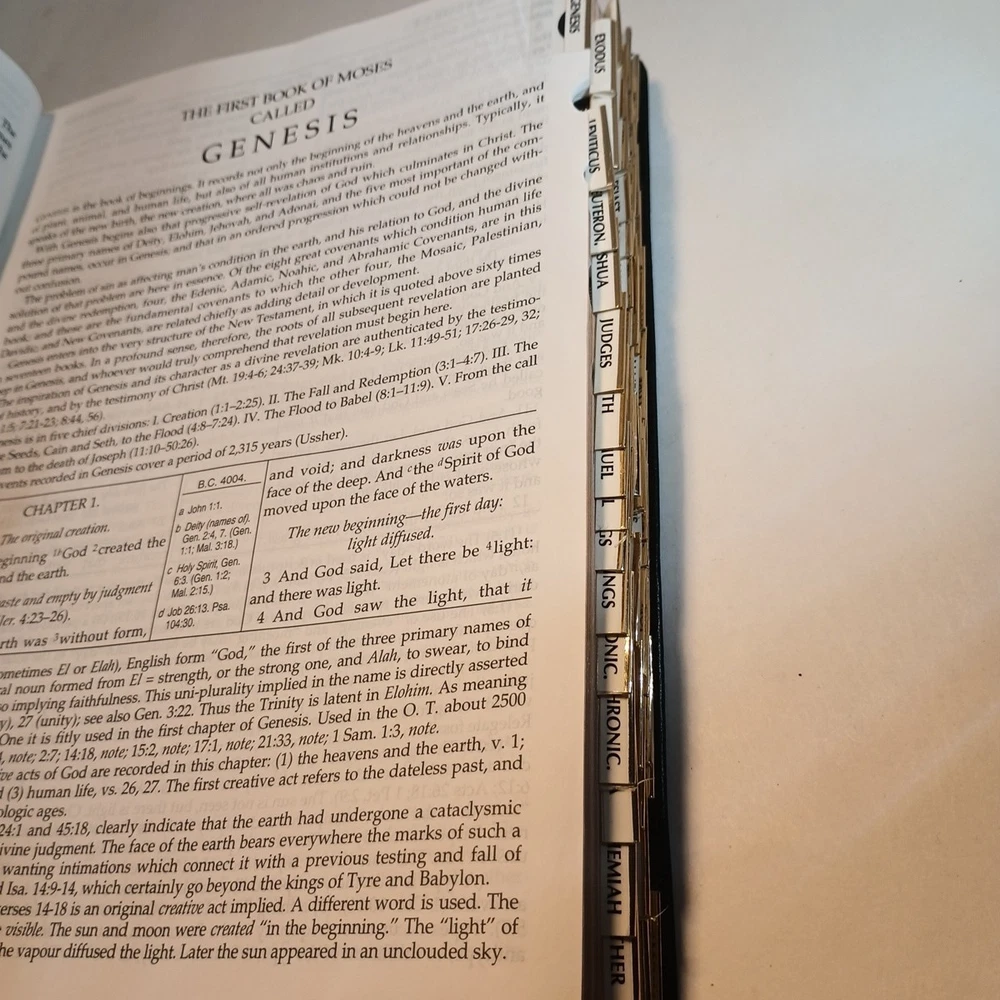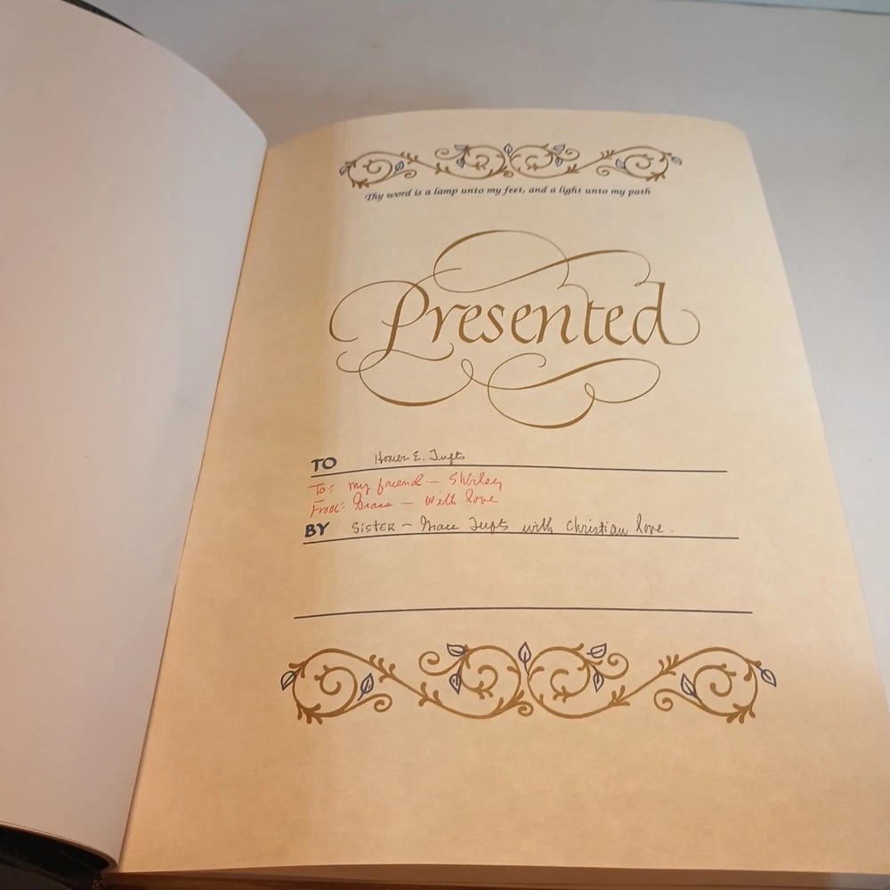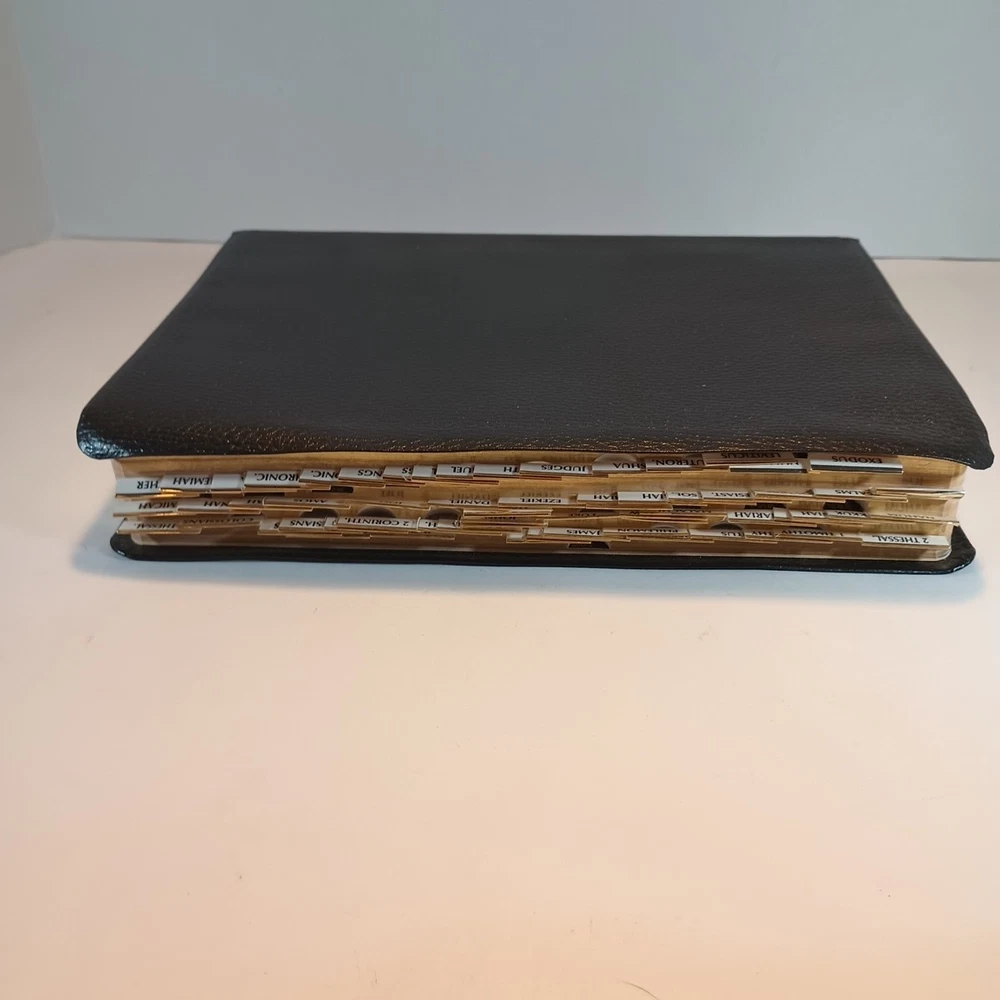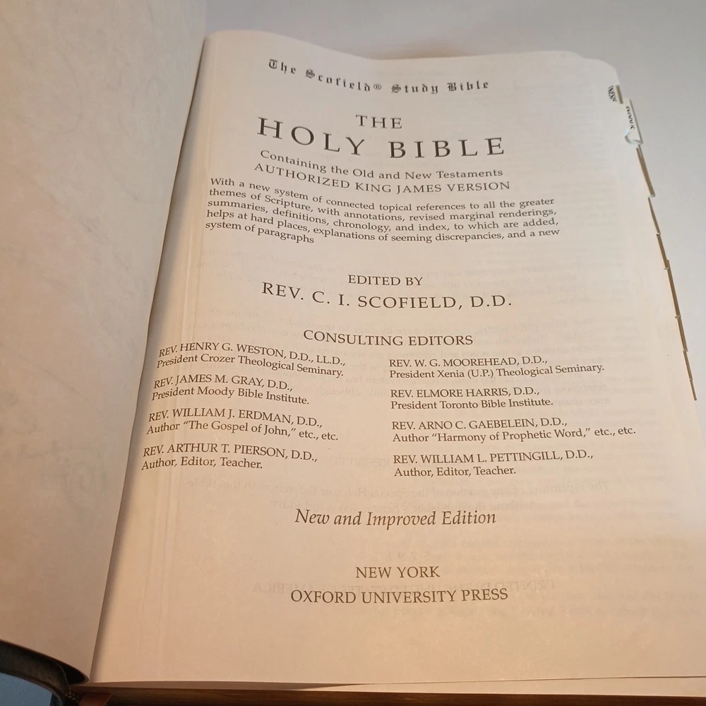 This lot is a Holy Bible Scofield Study Bible KJV LARGE Print. The Bible is i n used condition with writing on the presentation page. There is a some ding in the , please see photos. I am doing a clear out of our books we have too many to fit the space we have. We are a non-smoking household with cats.