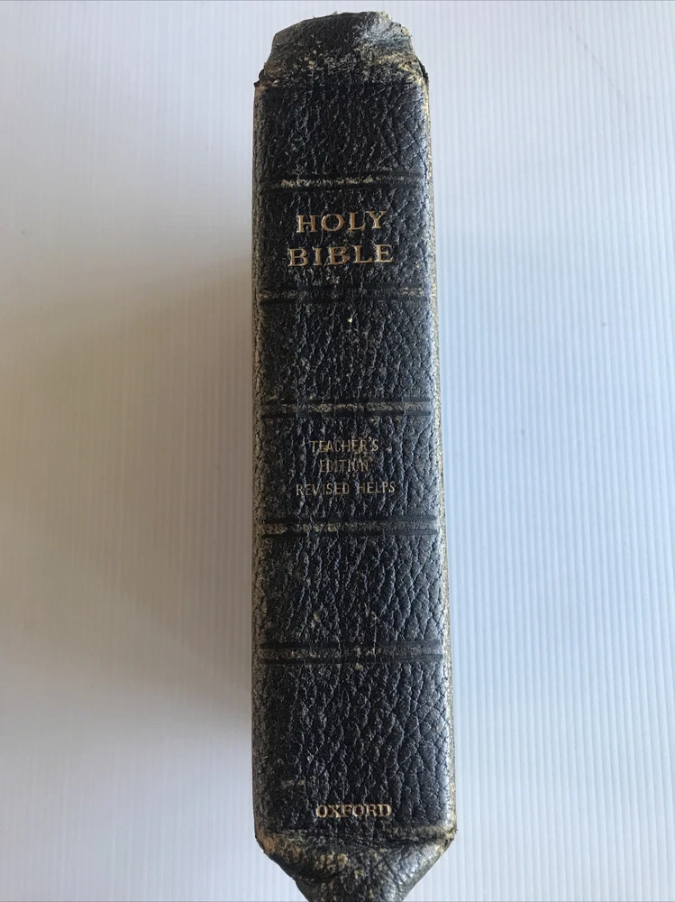 Holy Bible Teacher’s Edition Revised Help Oxford University Press Oxford Binding Silk Sewed 1932 Leather Bound Gold Embossed Maps and Illustratations This is an old bible with wear on the cover and some water damage. One of the maps pages has come away from the binding. Please see pictures