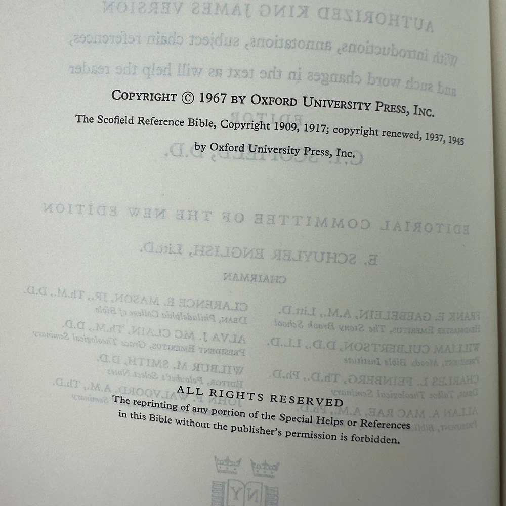 <![CDATA[<div>Holy Bible - The New Scofield Reference Bible (1967) Leather Bound Pre-Owned. Great vintage condition.