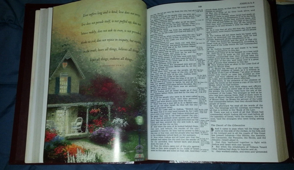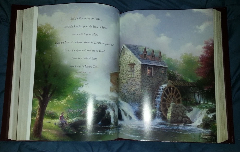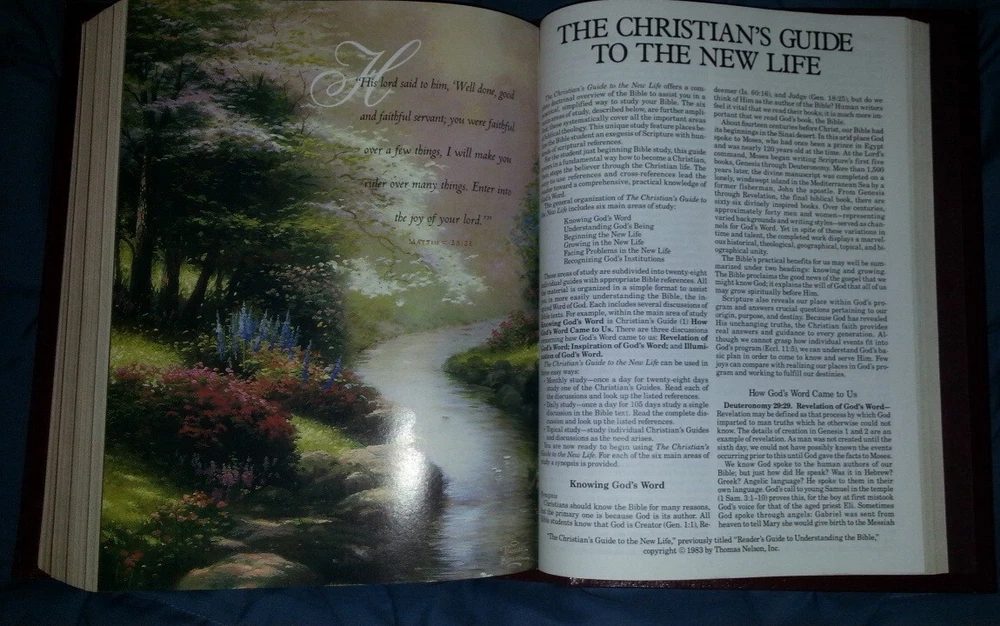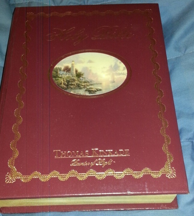Holy Bible Thomas Kinkade Family Reference Edition, 1985 NKJV Padded Hardcover This is a beautiful edition of the Holy Bible, published in 1985 by Thomas Nelson. The cover is made of padded leather and features a stunning illustration by Thomas Kinkade. It contains the New King James Version of the Bible with illustrations throughout. This edition is an original and collectible item, ideal for those who appreciate the importance of the Holy Bible. It is a must-have for any serious collector of Thomas Kinkade or someone in need of a grand bible. What You See Is What You Get. Shipped via USPS from a cat friendly home. Prior to bidding, if you have questions, please email me and I will respond as quickly as I am able. I will do my best to ensure that you are happy with your purchase. Thank you for your interest and viewing!