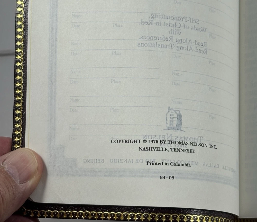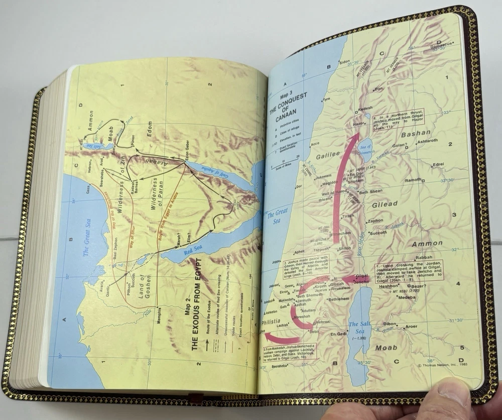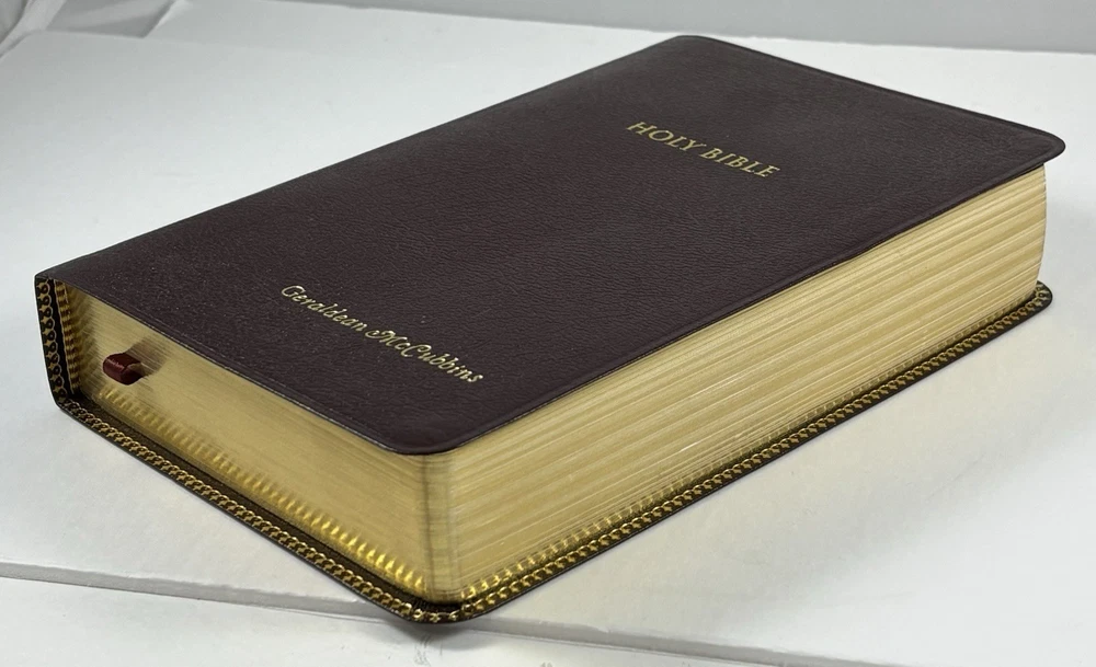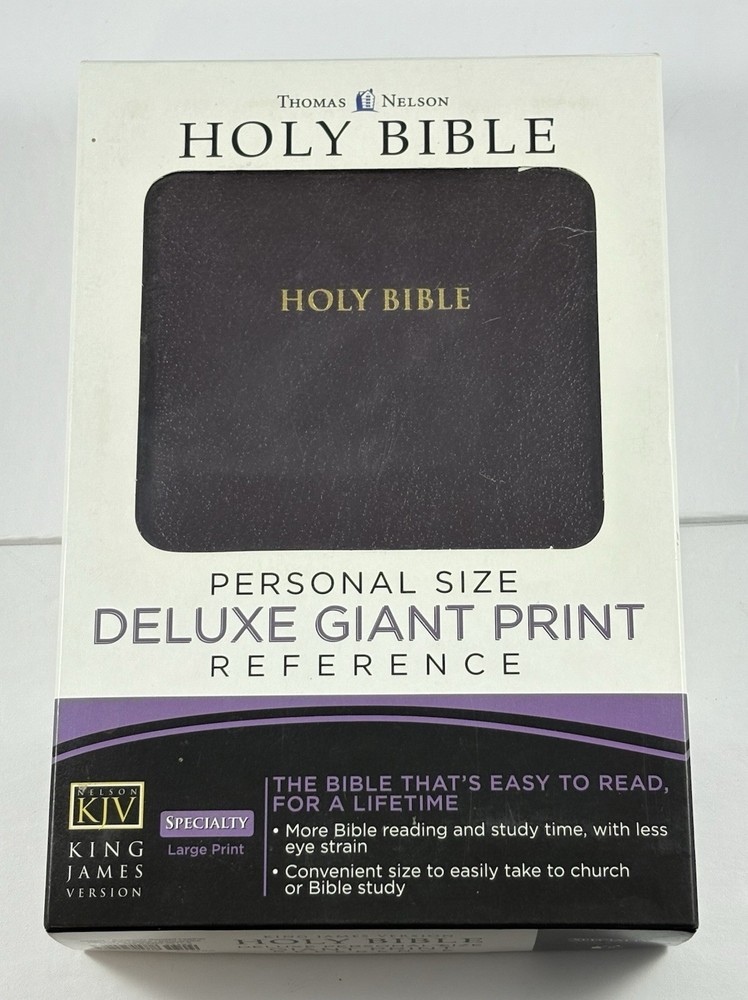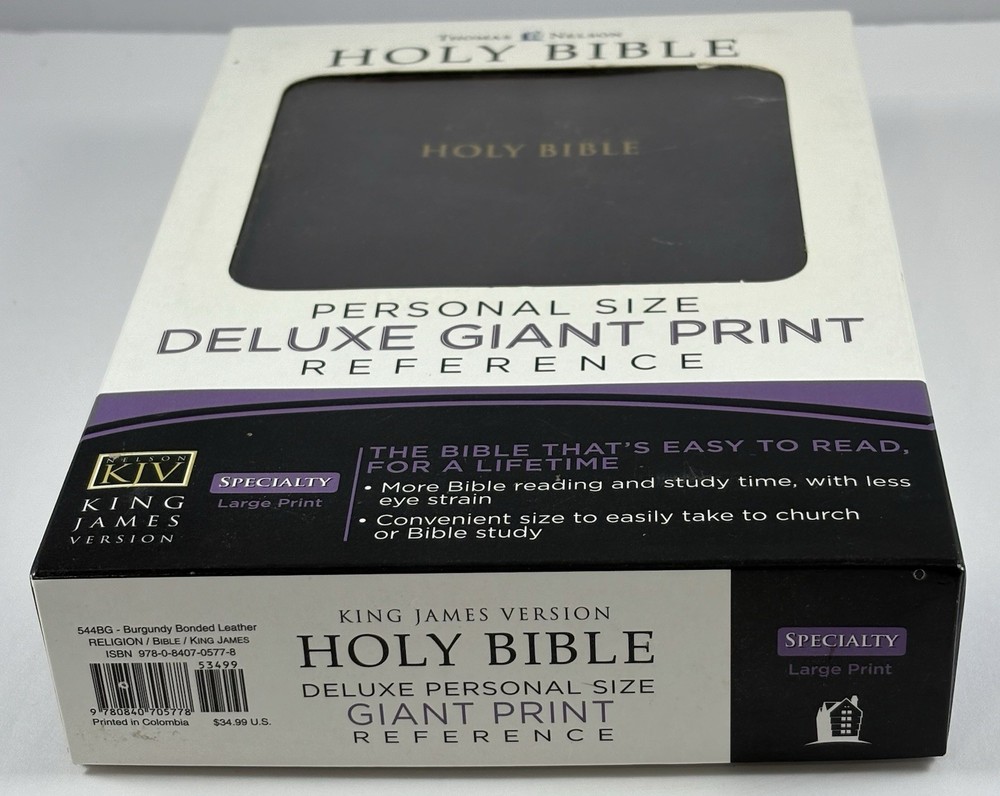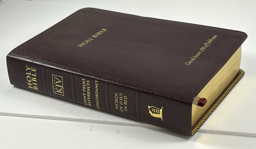 Holy Bible-KJV-Deluxe Giant Print-Burgundy Bonded Leather-Nelson 544BG-Very Good Listed as Very Good Condition. Some might think condition is Like New. It appears to have had very little if any use. There isn't any marking, writing, highlighting, or underlining. The Leather Cover and Pages appear to be in Like New Condition. Specialty Large Print. Words of Christ in Red. Original box included. The name Geraldine McCubbins is embossed in Gold on the front cover. You will receive exactly what you see in the pictures. International Buyers-Please Note: Import duties, taxes, and customs charges are not included in the item price or shipping cost. These charges are the buyer’s responsibility. Please check with your country’s customs office to determine what these additional costs will be prior to bidding or buying. 05242025/3499