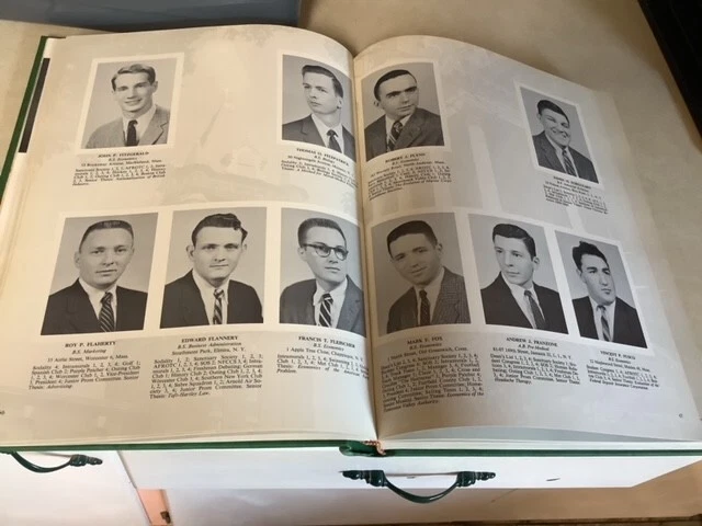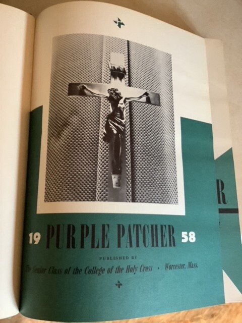 One original, complete hardcover (leather-like) volume. Free shipping to any of the 50 U.S. states. COLLEGE OF THE HOLY CROSS (Worcester Massachusetts) THE PURPLE PATCHER 1958 320 pages. Your typical college yearbook from this prestigious college. Wonderfully illustrated. Some notable students at this time at Holy Cross are as follows: John Durkin was a junior this year - New Hampshire senator. Nicholas D'Agostino was a sophomore - President & CEO of D'Agostino supermarkets in New York city. Jay O'Callahan was a sophomore - noted American storyteller. Condition is very good. No interior markings or staining. No inscriptions. No torn or bent pages. No library markings. Binding sound. All text and illustrations clean and clear. Covers and spines very good also. See photos please. Returns accepted with full refund if you are not satisfied. (You would need to pay return shipping.) Sorry, no sales to Canada or anywhere other than 50 U.S. states. If you visit someone, and you see no books in their house - Run Away! Run Away! Galdabini-1
