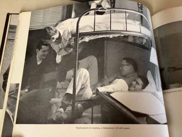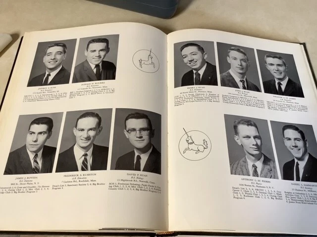 One original, complete hardcover (leather-like) volume. Adding in a bonus softcover volume of the 50th reunion of the 1960 class. Free shipping to any of the 50 U.S. states. COLLEGE OF THE HOLY CROSS (Worcester Massachusetts) THE PURPLE PATCHER 1960 298 pages. Your typical college yearbook from this prestigious college. Has cool color illustrations with medieval themes. Some notable students at this time at Holy Cross are as follows: Dr. Anthony Stephen Fauci would have been a sophomore in 1960. John Peterman was a freshman in this year. He is the real life man upon which the character J. Peterman is based in the Seinfelt episodes. Nicholas D'Agostino was a senior - President & CEO of D'Agostino supermarkets in New York city. Senior photo included. Jay O'Callahan was a senior - noted American storyteller. Senior photo included. Bonus item is softcover book of the 50th class reunion of the 1960 class. Condition is very good on both volumes.. No interior markings or staining. No inscriptions. No torn or bent pages. No library markings. Bindings sound. All text and illustrations clean and clear. Covers and spines very good also. See photos please. Returns accepted with full refund if you are not satisfied. (You would need to pay return shipping.) Sorry, no sales to Canada or anywhere other than 50 U.S. states. If you visit someone, and you see no books in their house - Run Away! Run Away! Galdabini-1