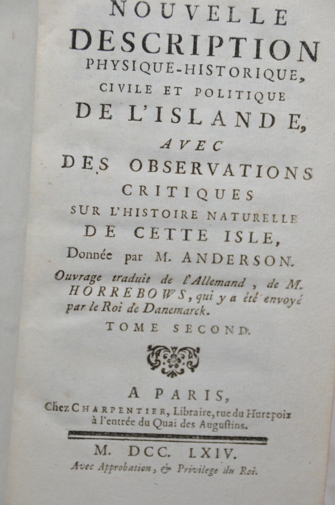 Horrebows: New physical, civil, civil and political description of Iceland with critical observations on the natural history of this Isle. Given by Mr. Anderson. Work translated from the German of Mr. Horrebows ... 2 Flight in 12. Full period binding of the period in good condition. Back to nerves. Golden title and decor. A torn cap. Solid bites. Solid works. Red and smooth slices. (42pp) + 368 + 372 pages. No card. Good interior condition. Few freckles. In Paris. At Charpentier. 1764. Horrebows: New physical, civil, civil and political description of Iceland with critical observations on the natural history of this Isle. Given by Mr. Anderson. Work translated from the German of Mr. Horrebows ... 2 Flight in 12. Full period binding of the period in good condition. Back to nerves. Golden title and decor. A torn cap. Solid bites. Solid works. Red and smooth slices. (42pp) + 368 + 372 pages. No card. Good interior condition. Few freckles. In Paris. At Charpentier. 1764.