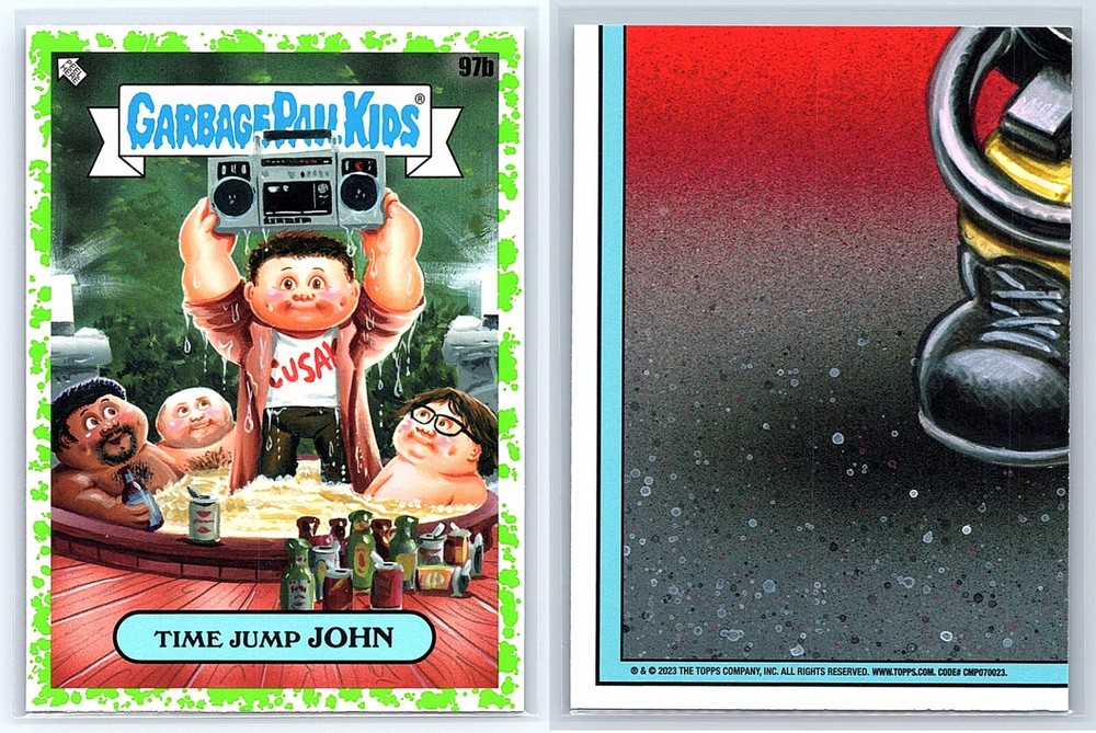 Absolutely love this hilarious GPK set! The Scott Tub Time Machine and Time Jump John cards are a brilliant spoof of Hot Tub Time Machine—so clever and nostalgic. The colors pop, the artwork is sharp, and they arrived in perfect condition. Fast shipping too! Great for collectors or as a fun gift. Highly recommend grabbing these before they’re gone!