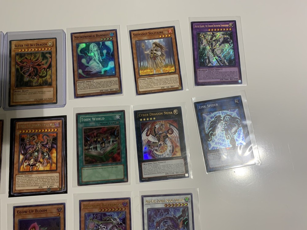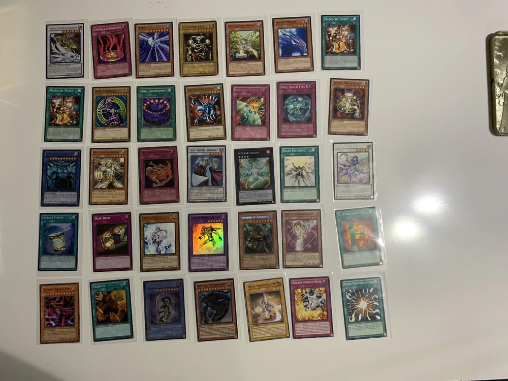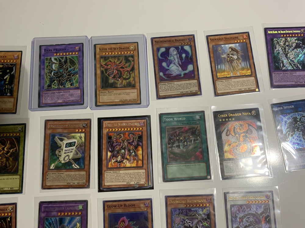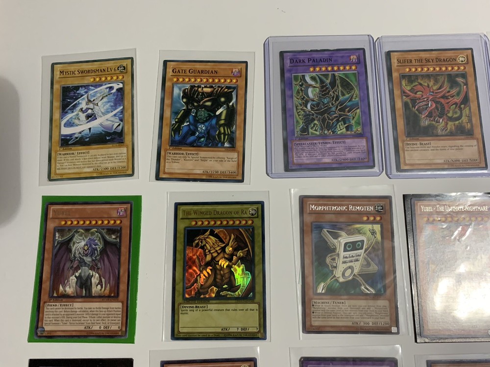 Huge 600+ cards YUGIOH lot… Notable cards include Dark Paladin MC-105 Slifer the Sky Dragon GBI-001 Many 1st edition cards Too many cards to list and all vary in condition. Comes with box and tin shown Please see pics for condition and feel free to reach out if any additional pictures are needed.