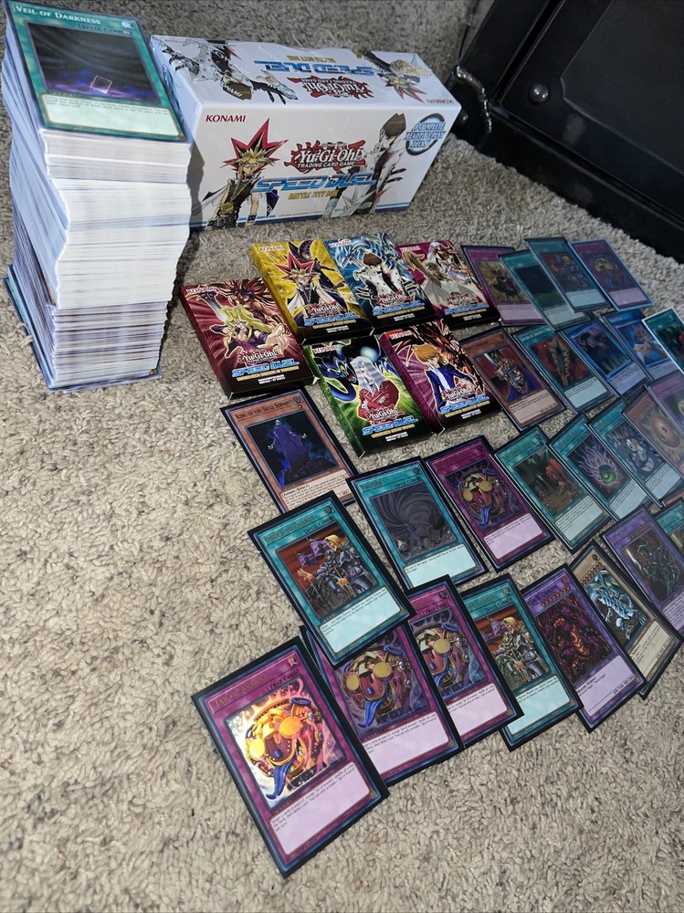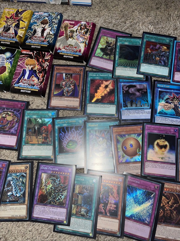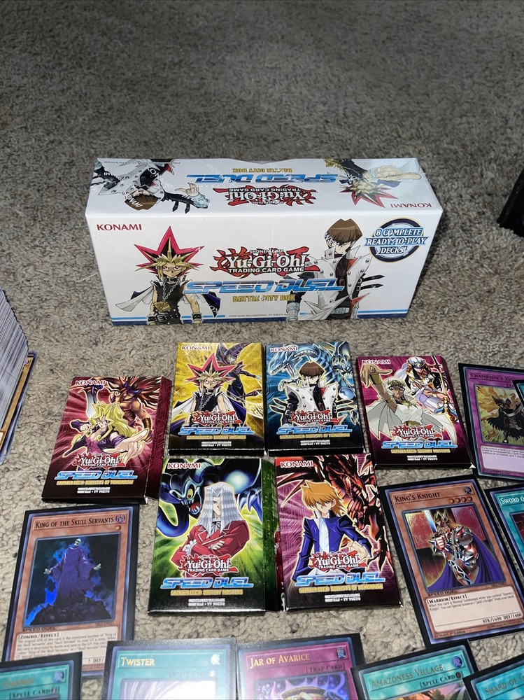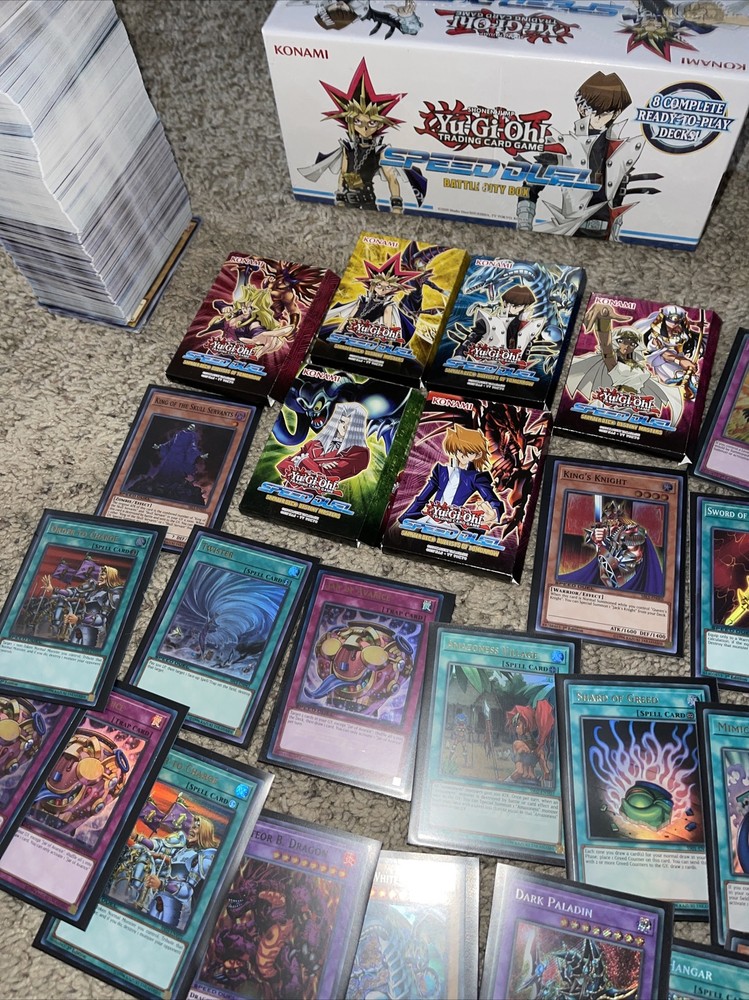 You will recieve: -new sealed battle city box - 6 speed duel decks from your favorite characters -31 speed duel holo yugioh cards (blue eyes, dark paladin) -handful of other common and support cards to add and build your decks. Perfect for anyone looking to get back into yugioh and start playing! Huge yugioh speed duel lot. Condition is "New". Shipped with USPS Priority Mail Medium Flat Rate Box.
