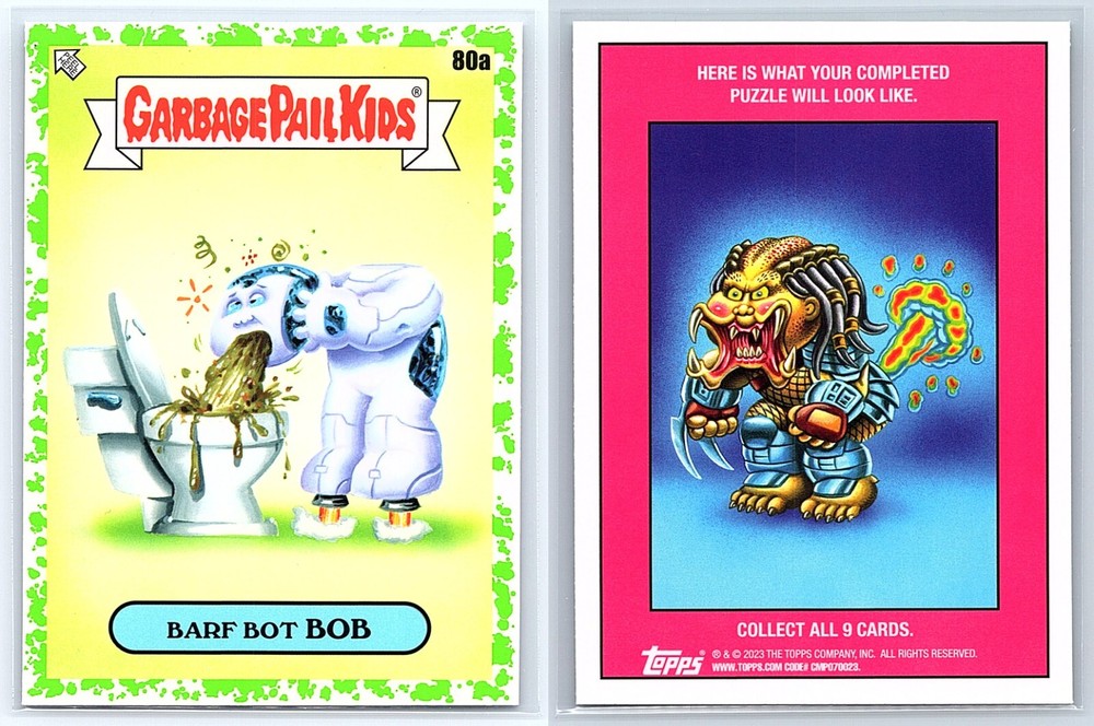 This set is a must-have for GPK and sci-fi fans! The Barf Bot Bob and Robby Retch cards are hilarious, high-quality, and packed with nostalgia. Perfect for collectors or as a fun gift—they arrived quickly and in mint condition. The seller ships fast and protects the cards well. Love the creative parody of *I, Robot*—such a cool addition to my collection! Highly recommend grabbing these before they're gone.