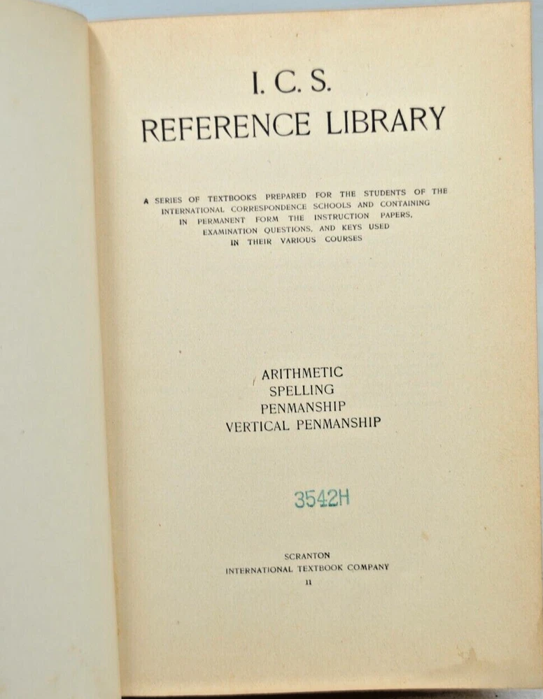The I.C.S. Reference Library is "A series of Textbooks prepared for the students of the International Correspondence Schools and containing in permanent form the instruction papers, examination questions and keys used in their various courses. 5.5"x8.5"x1.5"