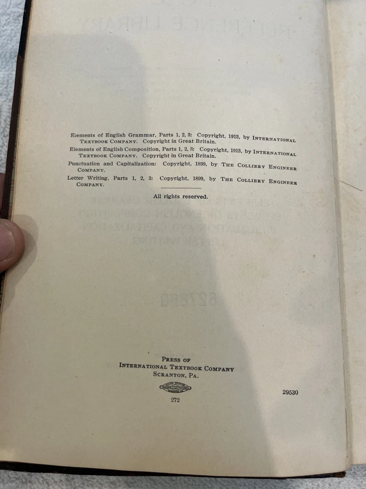 This antique book from the I.C.S. Reference Library is a treasure trove of information on grammar, punctuation, and letter writing. Published by the Press Of International Textbook Company in 1913, it is a valuable reference for anyone interested in the history of writing. The book is beautifully leatherbound and in excellent condition, making it a perfect addition to any collection. With topics ranging from grammar to punctuation to letter writing, this book is a must-have for anyone interested in the history of language and communication.
