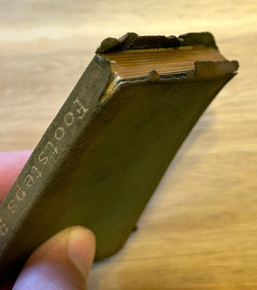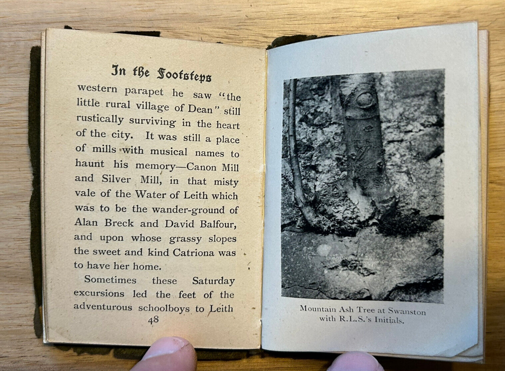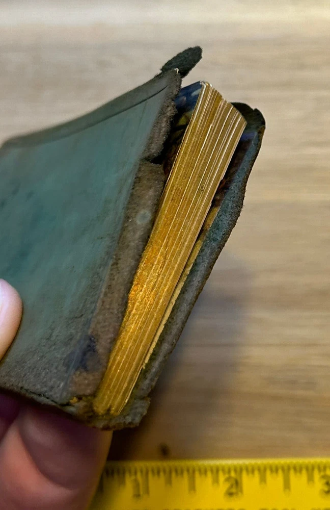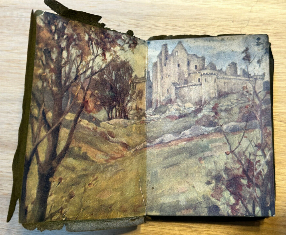 Neat little miniature book, measuring about 2.5x3.25 inches, bound in soft leather. Illustrated. Gilded page edges. Published circa 1911 based on inscription. Good condition overall. Edges of leather worn and tearing away. Small tear on edge of spine. Binding is solid. Inscription on half title. Text otherwise clean. Looks better in person than in photos.