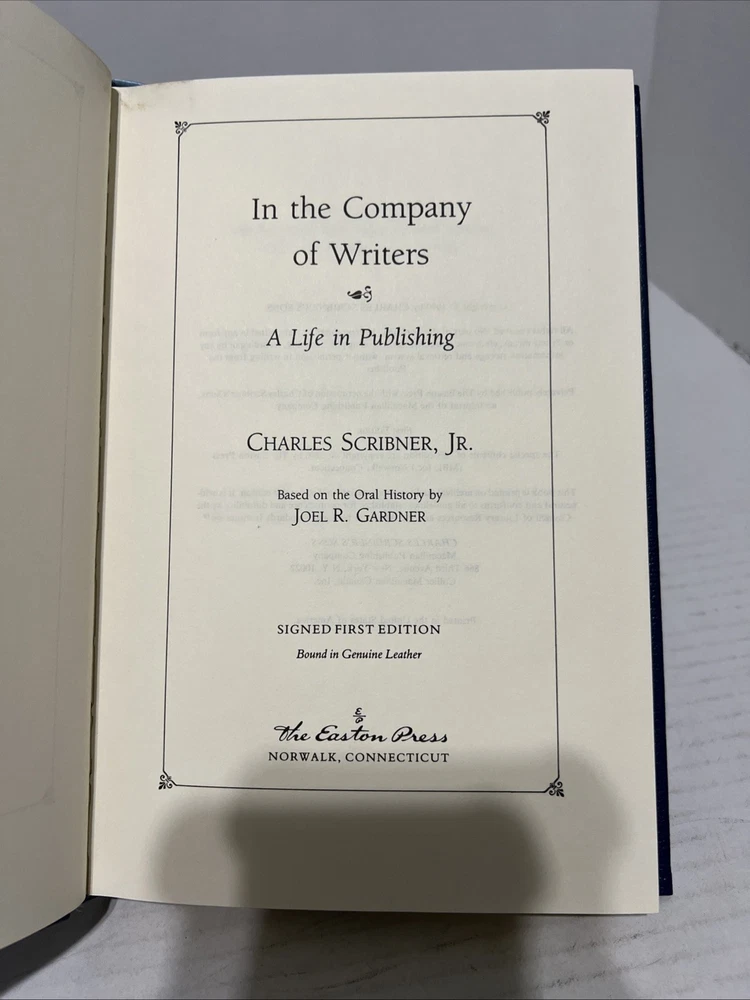 Delve into the world of literature with "In the Company of Writers" by Charles Scribner, Jr., a compelling exploration of biography and autobiography. This exquisite leather-bound volume, published by Easton Press in 1990, is a treasure for any writing enthusiast or collector. The book is signed, further adding to its uniqueness and desirability. Crafted in the United States, the book is presented in English and originates from Norwalk, CT. It is an original print, ensuring authenticity. With its special first edition status, this piece of literary history is a must-have for your library or collection.