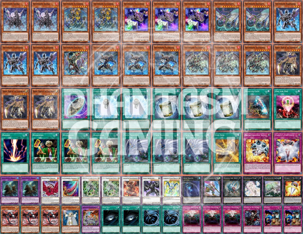 Deck Name: Infernoid (DracoPal) (A) # Main Deck (40) 2 - Infernoid Antra 2 - Infernoid Attondel 3 - Infernoid Decatron 2 - Infernoid Devyaty 3 - Infernoid Harmadik 1 - Infernoid Onuncu 3 - Infernoid Patrulea 3 - Infernoid Seitsemas 3 - Raiden, Hand of the Lightsworn 1 - Burial from a Different Dimension 2 - Charge of the Light Brigade 3 - Instant Fusion 1 - Monster Gate 1 - One for One 1 - Raigeki 3 - Reasoning 3 - Twin Twisters 1 - Void Seer 1 - Breakthrough Skill 1 - Vanity's Emptiness # Extra Deck (15) 2 - Elder Entity Norden 1 - Black Rose Dragon 1 - Hi-Speedroid Chanbara 2 - PSY-Framelord Omega 1 - Scarlight Red Dragon Archfiend 1 - Scrap Archfiend 1 - Stardust Spark Dragon 1 - Abyss Dweller 1 - Castel, the Skyblaster Musketeer 1 - Diamond Dire Wolf 1 - Gem-Knight Pearl 1 - Mecha Phantom Beast Dracossack 1 - Number 11: Big Eye # Side Deck (15) 3 - Cyber Dragon Core 1 - Lyla, Lightsworn Sorceress 1 - Chimeratech Fortress Dragon 2 - Dark Hole 2 - Mystical Space Typhoon 3 - Anti-Spell Fragrance 1 - Mischief of the Gnomes 2 - Mistake You will receive all of the following cards listed above. Most cards will will be in near mint condition. In the case of certain older cards we will do our best but some cards may be light or even moderatly played in extreme condtions. Those conditions being the card has not been reprinted in a number of years and con no longer be easily purchased in light or near mint condition. Set, Rarity, and Edition will vary and cannot be special requested. These lists are constructed with least expensive rarities we have available in stock. All cards are play legal copies. Note: If purchasing a Yugioh Deck all Speed duel cards are 100% legal at all levels of play. Store Policies Here at PMG_LLC , we pride ourselves on having the best customer service around. If you have any questions or can't seem to find something that you want please do not hesitate to contact us. We will do our best to respond to all questions within one business day. Hours of Operation: Monday-Friday: 2:30pm - 10:00pm Saturday- 10:00am - 8:00pm Sunday 11:00am - 5:30pm Note: We are closed all national holidays. Info: Thank you for choosing PMG_LLC . We appreciate your business. We ship Monday through Friday to make sure you get your deck as quickly as possible. All orders priority orders can use combined shipping. In order to use the combined shipping your whole purchase needs to be checked out as one order. We ship once we have received your payment and payment has cleared. As always if you have any questions or concerns please feel free to contact us via email. Shipping Information: We ship Monday through Friday, barring national holidays during which the United States Postal Service is closed. If you purchase a card on Friday or Saturday please bear in mind it will not ship until Monday. US Shipping: First Class Mail : Free. Comes with tracking information. Priority Mail with Delivery Confirmation : $9.99 All orders are shipped in appropriate protective material inside bubble mailers. International Shipping: We do not offer international Shipping Return Policy: You must return items sold and fulfilled by PMG_LLC within 30 days of delivery to be eligible for a refund. Returns which are damaged in the mail due to improper return packaging will receive partial refunds. We will process a full refund for all items returned in their original condition. In order for us to process your full refund you must include the full name associated with the order as well as the eBay order number inside the return packaging. We will not process returns which do not include the buyer's name and order number. Requirements: Please return items with the original plastic packaging. Failure to do so may result in a partial refund. Also you must inform us of any returns you may wish to process before sending them back. Any items simply send back to us without prior contact will not be eligible for refunds. Important Notes Remember that to benefit from our domestic combined shipping on priority orders you must to pay in a single payment. If you place two separate priority orders you will be charged the $7.50 shipping fee for both orders. If you place multiple orders for Priority shipping you will be charged the corresponding shipping costs for each order, even if you place the orders on the same day. We do not refund shipping costs as we tend to package orders throughout the day and may not notice that you would otherwise have qualified for combined shipping. We want to provide you with 5 Star service and earn your Positive Feedback, so if for any reason you are not happy with your transaction, contact us before leaving feedback. Business Day - Our business day runs from Monday to Friday from 9am to 4pm, excluding US national holidays. Any orders placed or payments cleared less than 4 hours before the close of business will be considered orders from the following business day.