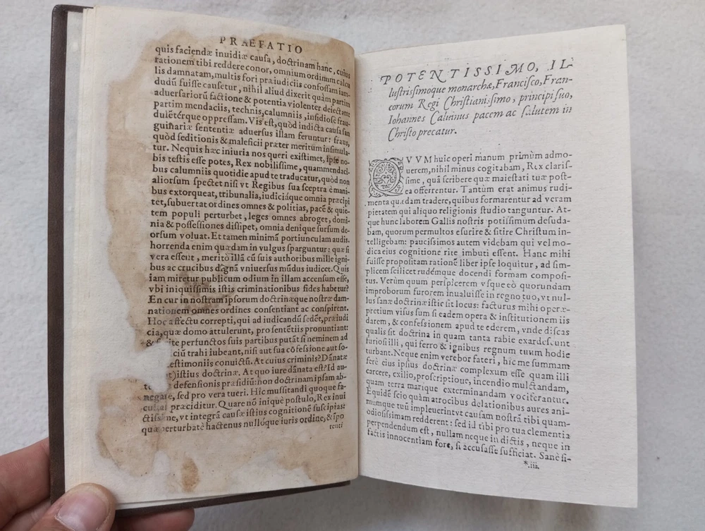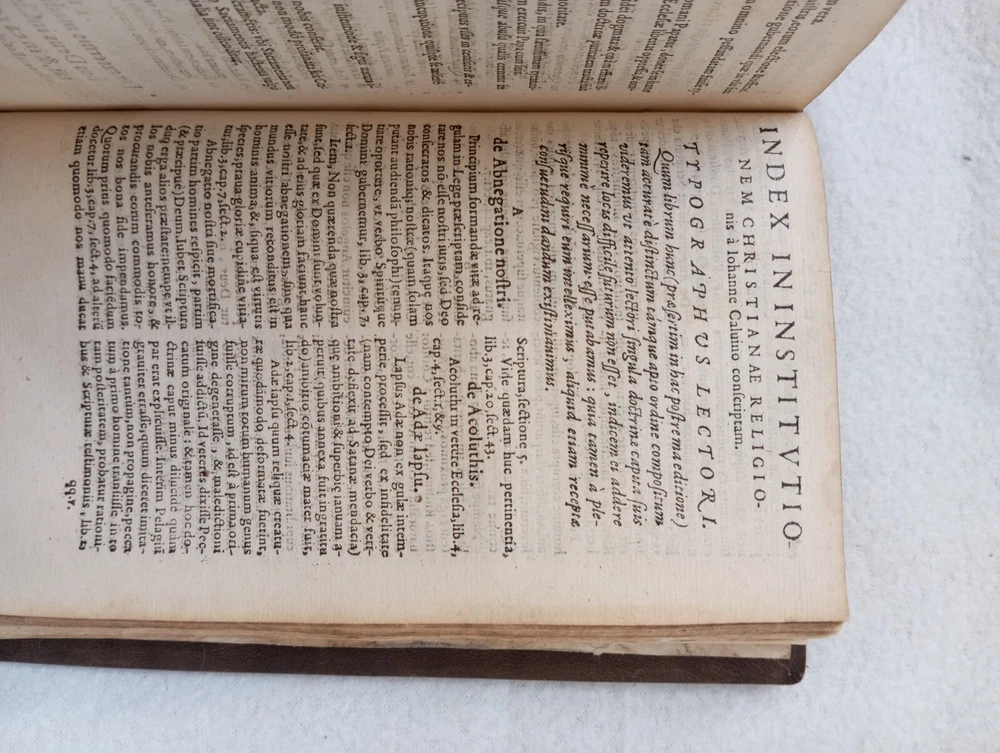 This collector's edition of John Calvin's "Institutio Christianae religionis" is a stunning piece for any serious bibliophile. The Latin text, leather binding, and ex-library markings add a unique historical charm. A must-have for those who appreciate rare religious works—authentic, well-preserved, and full of depth. Truly a treasure for collectors!