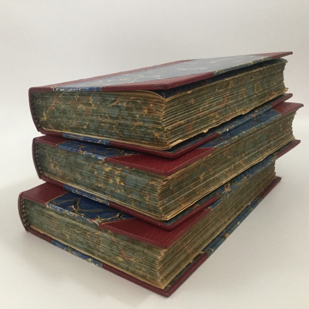 Washington Irving. THE LIFE OF WASHINGTON. 3 Volume set. New York; Belford, Clarke and Company. No copyright date. Quarter bound leather with marbled boards. Page ends are marbled in th same colors as the end pages. Gold stamped title on spine. Volume 1 printed 1888 by American Book Mart , volumes 2 & 3 by Belford, Clarke and Company unknown date