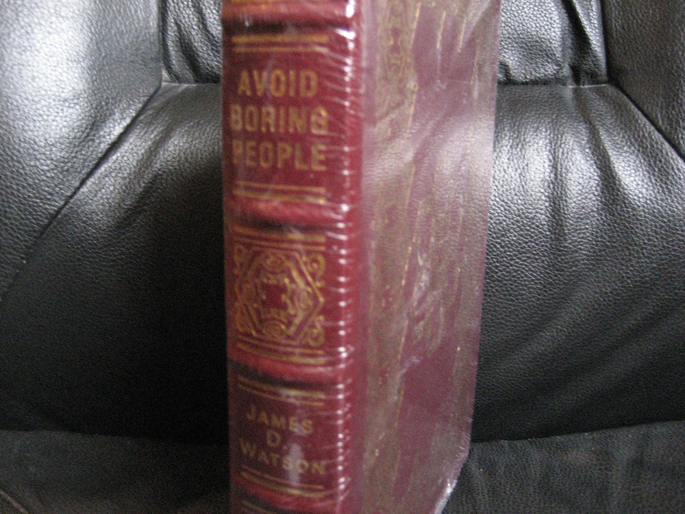 Up for auction is a brand new signed first edition copy of James D. Watson 's best-selling memoir: "Avoid Boring People" . This is the follow-up volume to Watson's previous best-sellers, "The Double Helix" and "Genes, Girls and Gamow". This magnificent book is signed by the Nobel Prize winning scientist and co-discoverer of the DNA structure and genetic code. The book is sealed in the Easton Press original shrink wrap and contains inside all the original materials, including the certificate of authenticity, signed by the author, and the Publisher's Note Card. This is a numbered first edition that was published in only 1125 copies. Easton Press books are the golden standard in the publishing industry, highly collectible and lasting generations. Easton Press Full Genuine Leather Dubbed Spine Accented Wit 22 kt. Real Gold Satin Ribbon Page Marker Distinctive Cover Design Gilded Page Edges To Protect Against Humidity High Quality Acid - Free paper Smyth-Sewn Pages Silk-Moire Endleaves