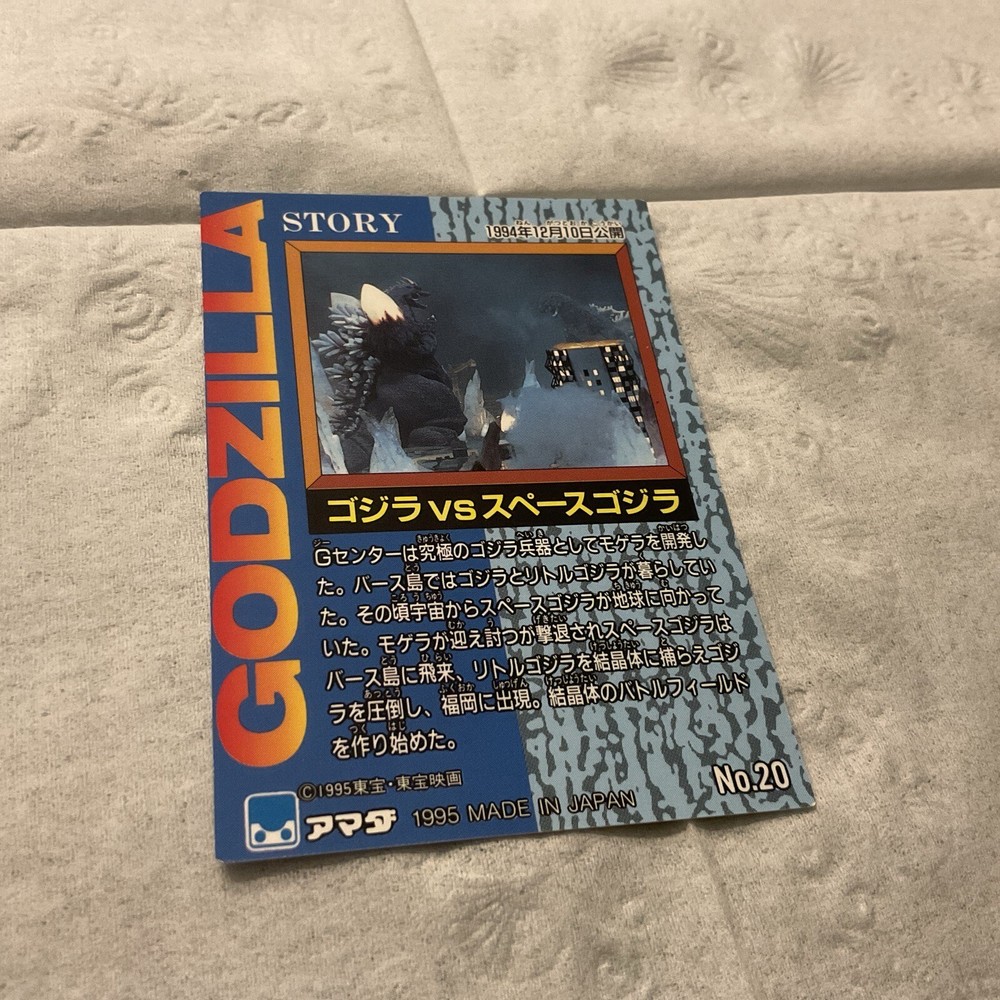 This is a rare and collectible Japanese trading card featuring Godzilla from the 1995 Trading Collection by JPP Amada. The card is made of high-quality card stock and is in very good condition. It is a standard size, non-sport trading card with the franchise of Godzilla and the genre of Kaiju. The card is an original release and is not a licensed reprint. It was manufactured in Japan in 1995 and has the set number of 20. The card is not autographed and is written in Japanese. The card is perfect for any Godzilla collector or Kaiju fan.