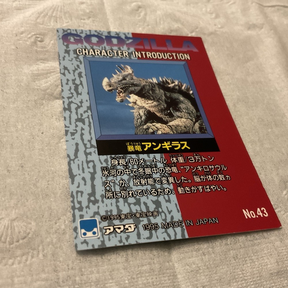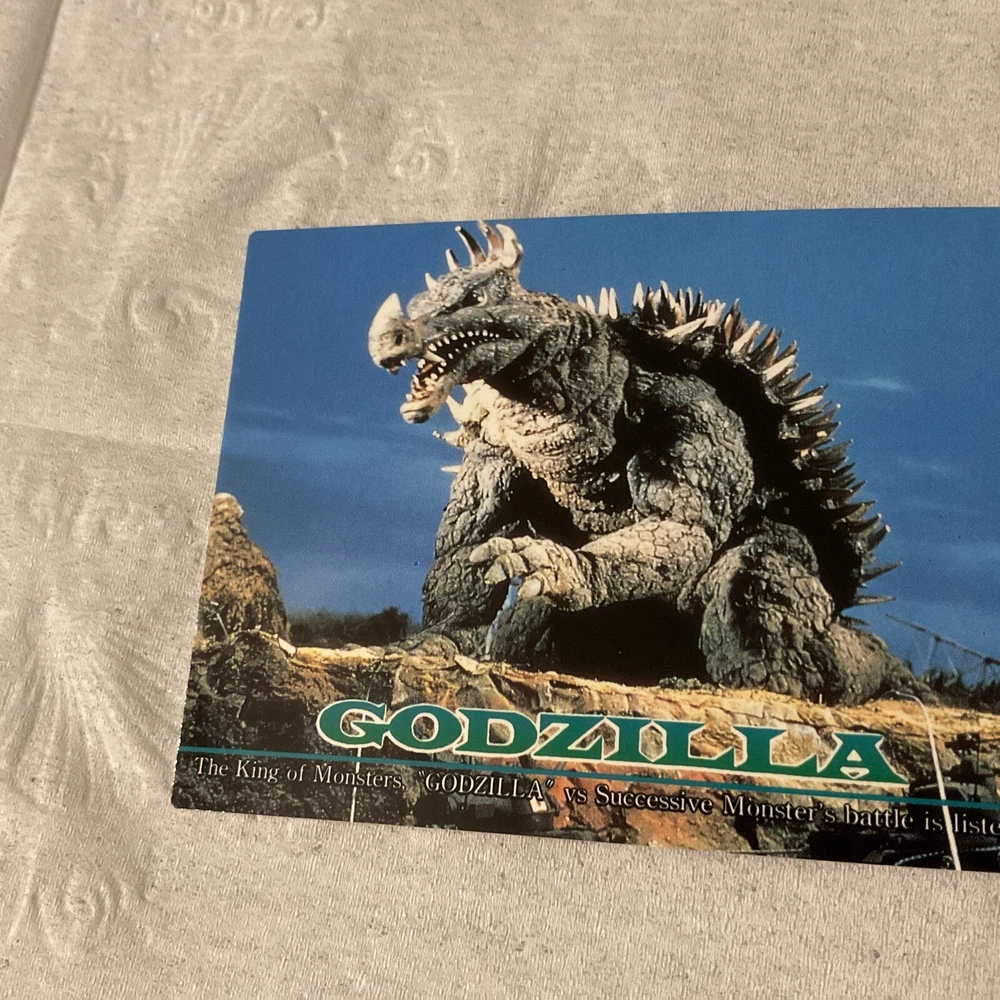 This Japanese trading card from JPP Amada features the iconic kaiju monster, Godzilla, in the 1995 Trading Collection set. The card is a base trading card with a standard size and is made of card stock material. It is an original piece and not a licensed reprint. The card is in very good condition and has not been graded. It is not autographed and is written in Japanese language. Manufactured in Japan, the Godzilla trading card is a great addition to any non-sport trading card collection.