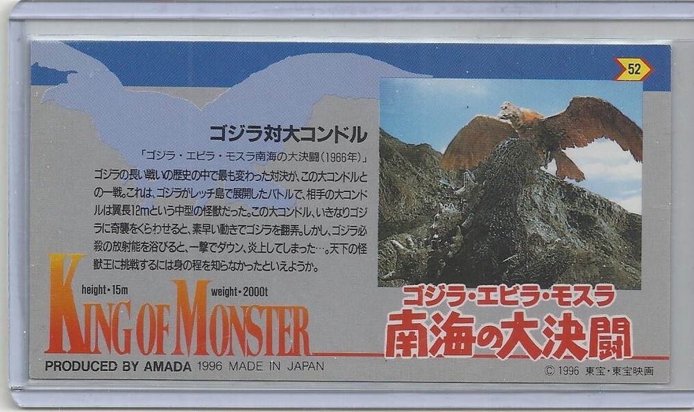 1996 Amada Godzilla King of Monsters Widecollection Base Card #52 Japan