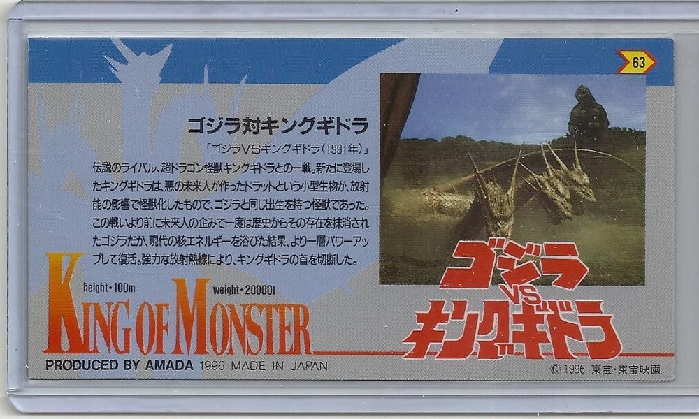 1996 Japan Godzilla King of Monsters Amada Widecollection Base Card #63