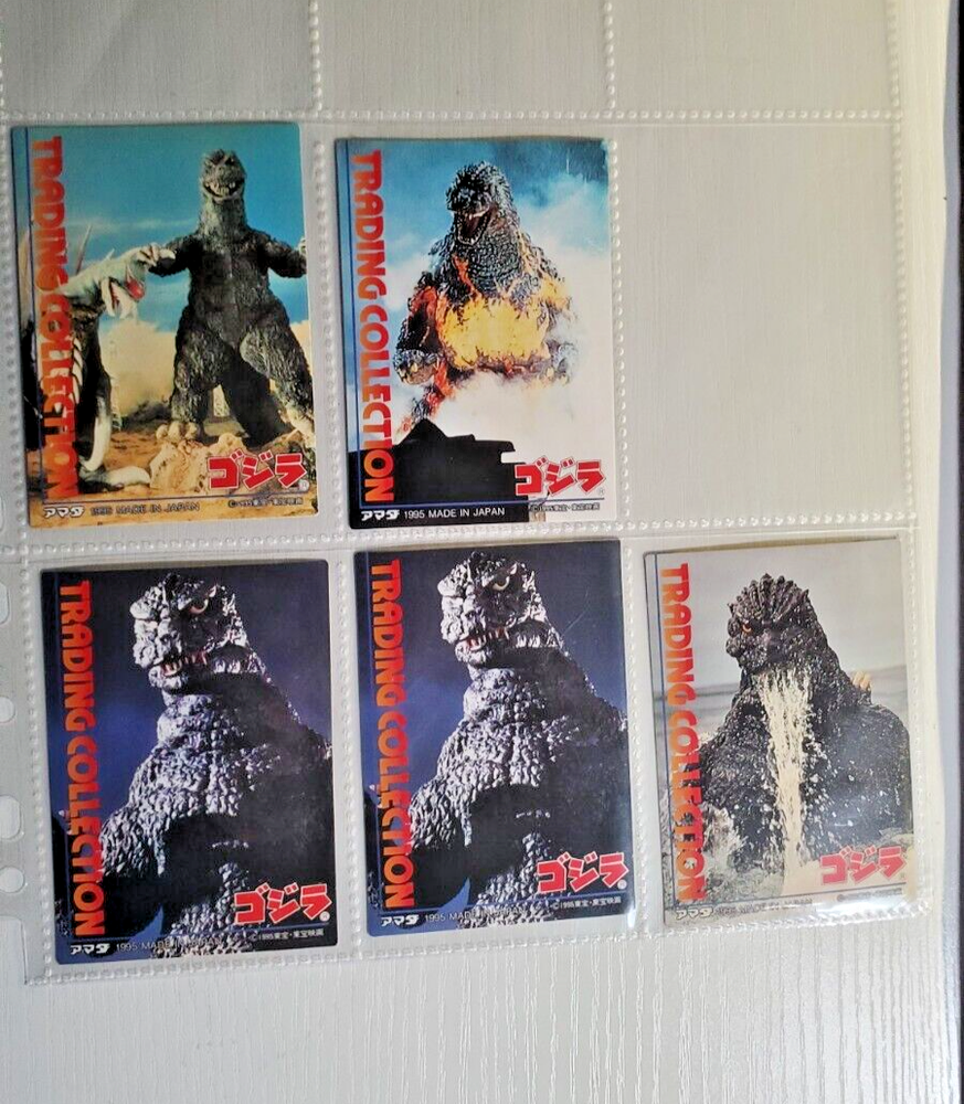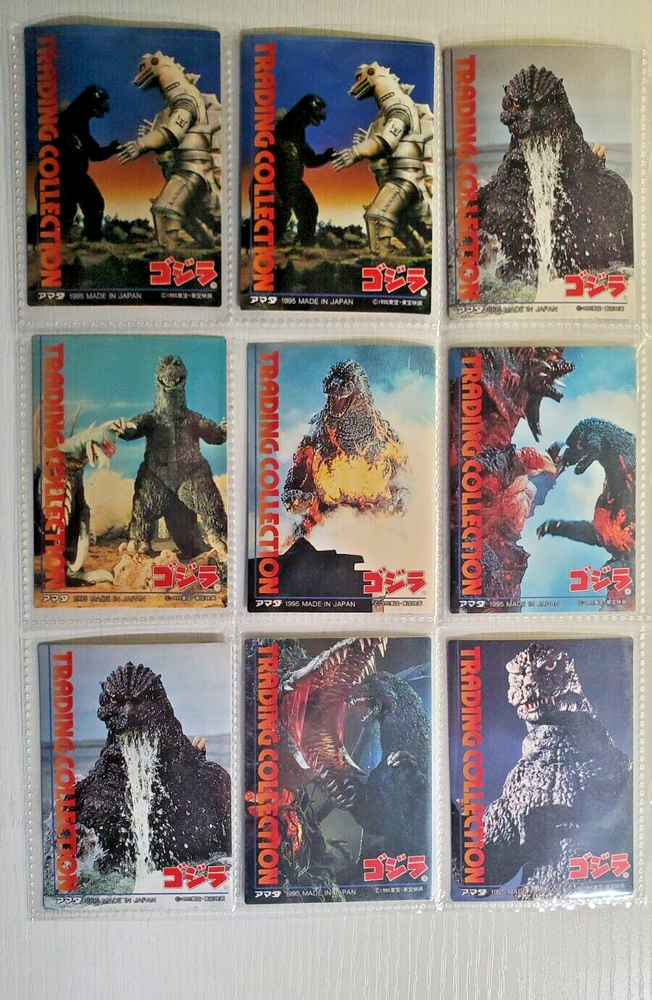 The product is a set of 14 vintage Japanese Godzilla trading cards from 1995. It features Godzilla characters in a non-sport trading card format, with checklist and chase card features included. The cards are part of the Godzilla franchise and TV show, manufactured by JPP Amada in the United States. The cards are standard size, made of paper, and are intended for ages 4 and up.