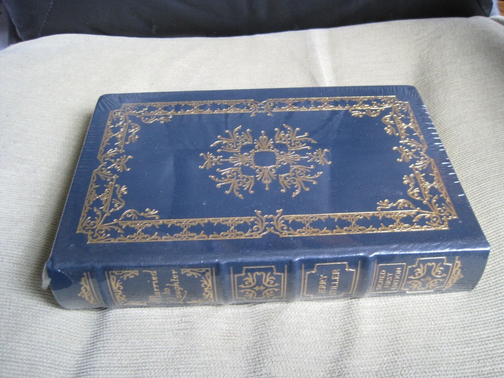 This is a leather bound signed numbered first edition of Jerry Stiller's best selling autobiography - "Married To Laughter" , a fascinating memoir written by the famous actor, comedian and TV personality, father of the equally famous Ben Stiller. The book is unread and in great condition, still sealed in the original plastic packaging. Signed by the author on the limitation page, this is one of only 1200 numbered copies ever printed. The publisher's note card and the signed and dated certificate of authenticity are also included. Easton Press books are the golden standard in the publishing industry, highly collectible and lasting generations. Easton Press Full Genuine Leather Dubbed Spine Accented Wit 22 kt. Real Gold Satin Ribbon Page Marker Distinctive Cover Design Gilded Page Edges To Protect Against Humidity High Quality Acid - Free paper Smyth-Sewn Pages Silk-Moire Endleaves I combine multiple items for savings on shipping charges. I ship worldwide. Please ask about international shipping charges and/or different shipping options. Thank you!